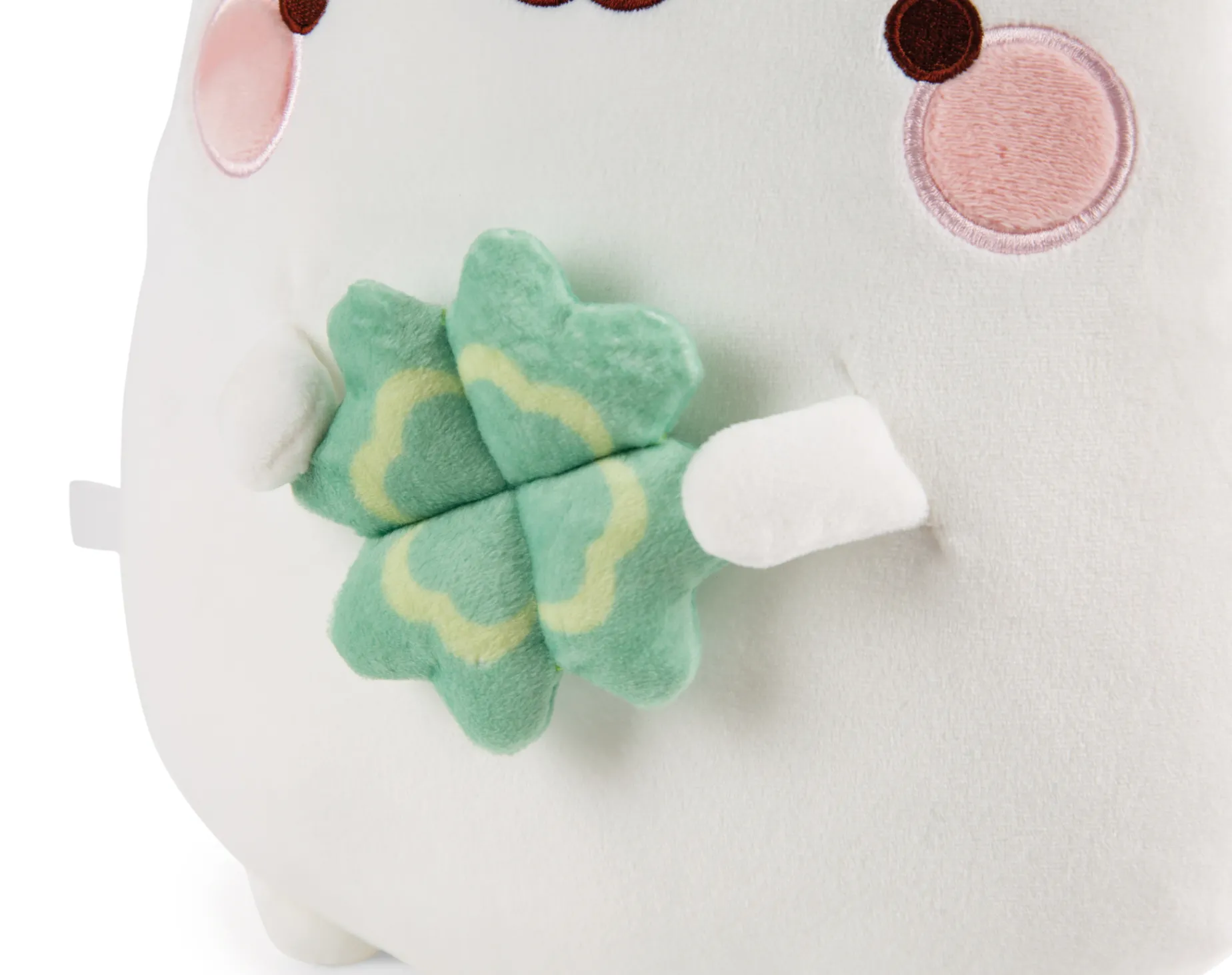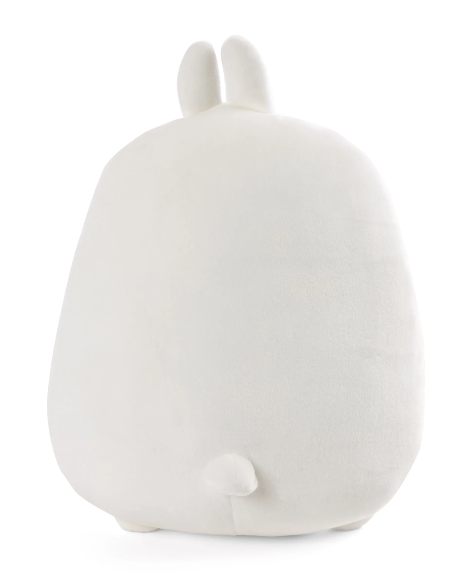 The cuddly soft plush pillow in the shape of Molang, the lovable character of the TV preschool series and known from social media, is made of a super fluffy soft plush with a particularly cuddly filling. Molang carries a lucky charm, a green four-leaf clover, in the hands. With the decorative plush pillow as a gift it is guaranteed that cuddly friends and MOLANG fans alike are happy and grateful.