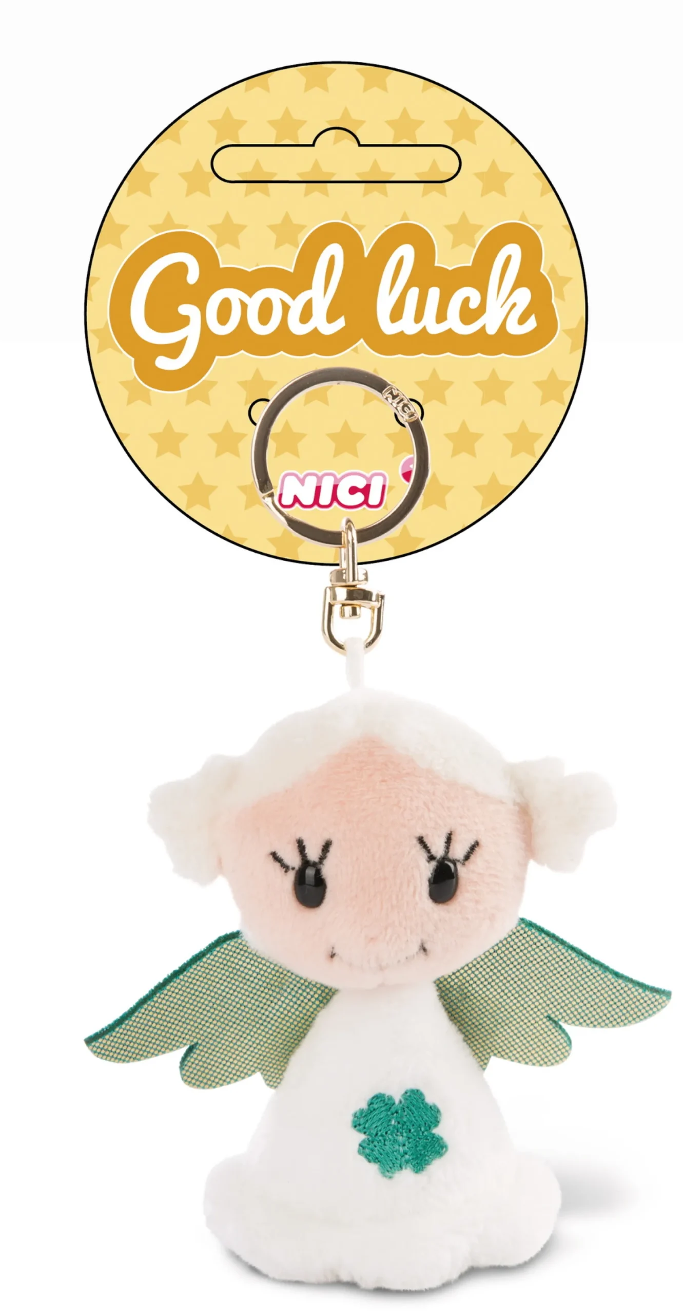 Guardian angels by NICI: Always a good idea! The little angel with green glittering wings and a cloverleaf on his chest is looking forward to becoming your new guardian angel. In its practical format, this guardian angel key ring fits almost everywhere and can faithfully fulfil its task as guardian angel. Simply incomparably cute!
