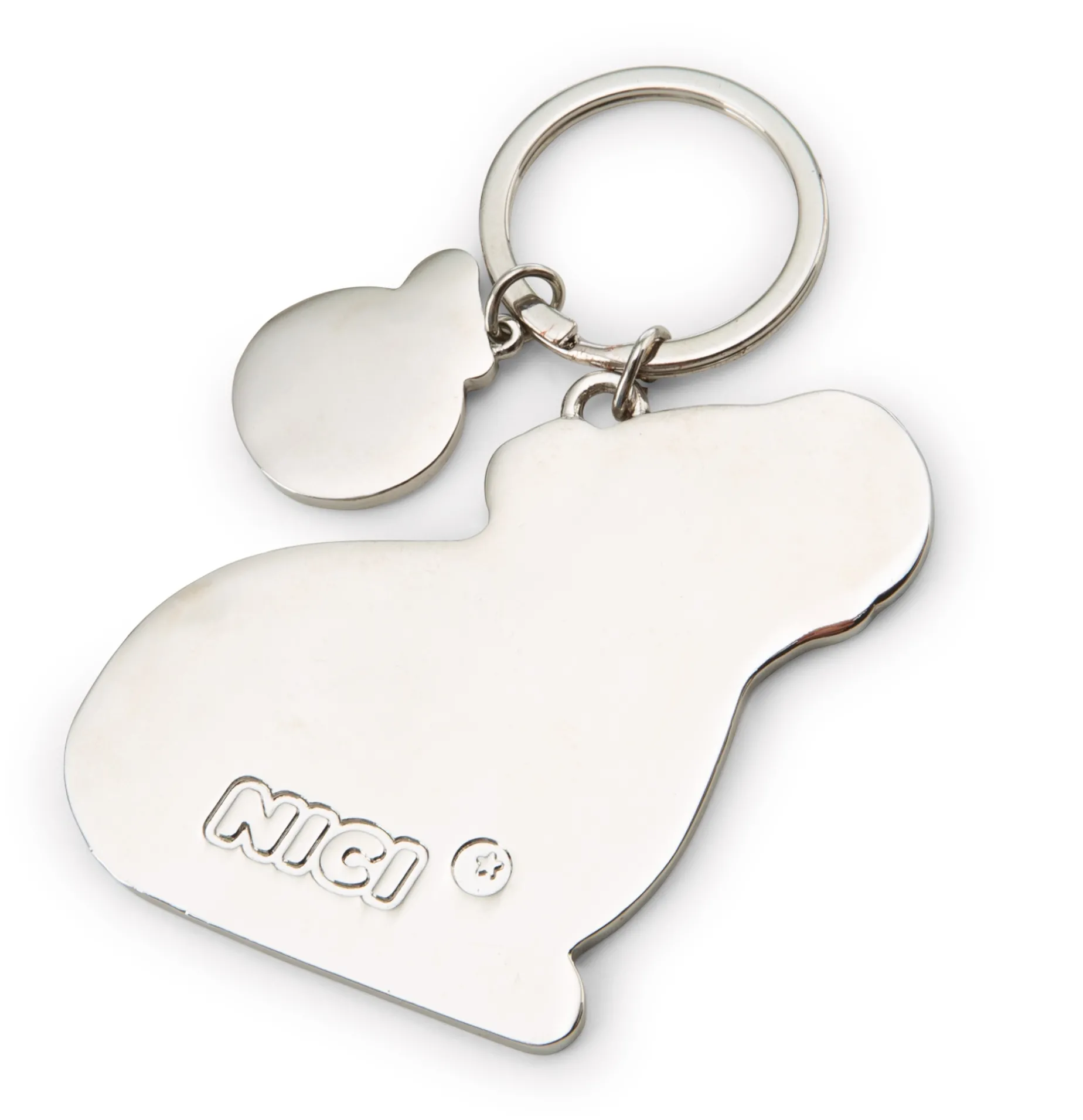 Watch out Capybara fans! Your favorite animal now accompanies you as a key holder made of sturdy metal! With a size of 8cm and a little charm pendant in the shape of an orange, the keyring is a practical accessory for your bunch of keys, backpack or school bag and, of course, a real eye-catcher! An exciting gift, not just for friends of the funny trend animal!