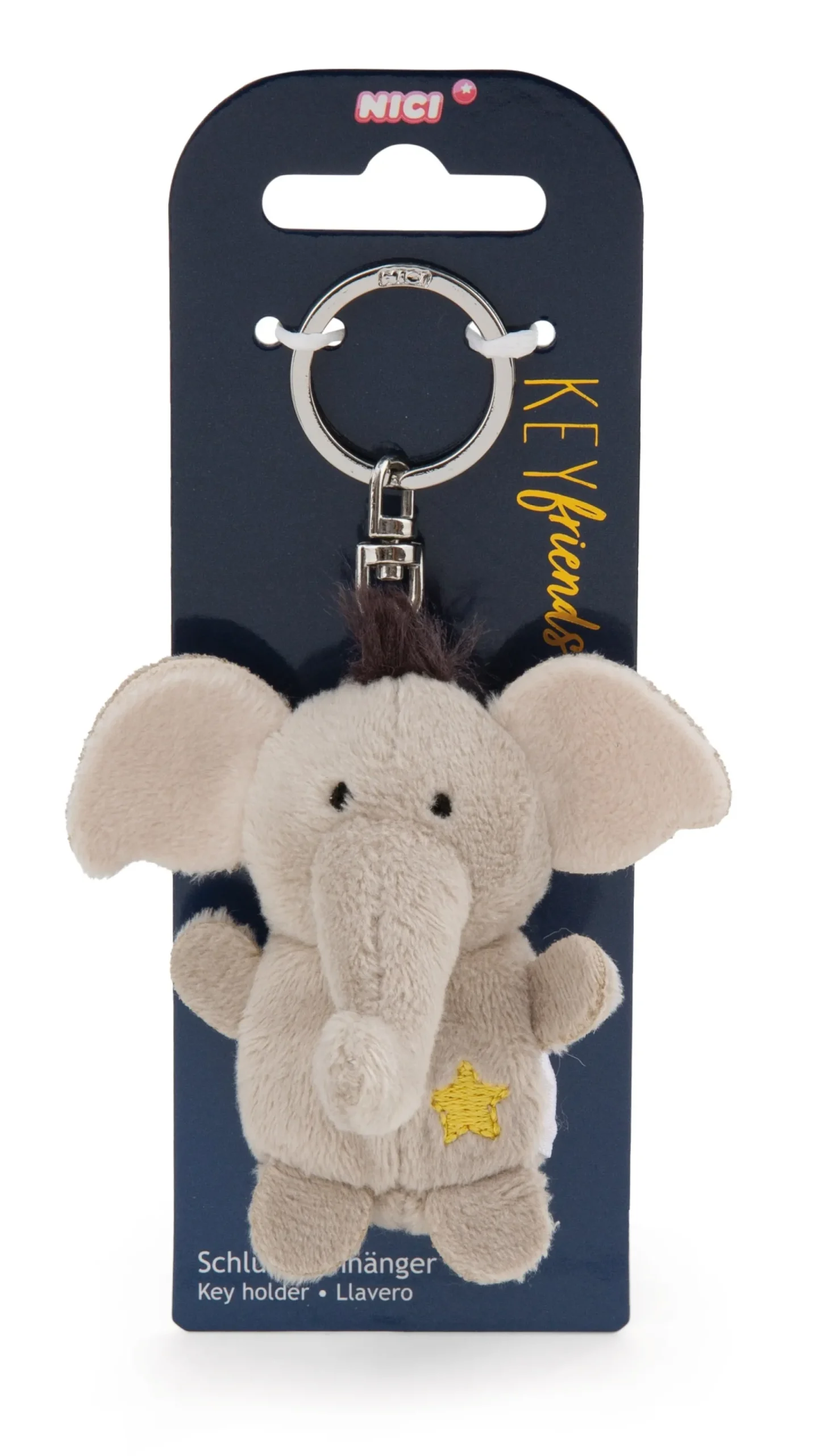 With the elephant keyholder from the Key Friends collection by NICI, everyday life becomes a little fluffier! The enchanting plush pendant with sturdy metal key ring is not only a real eye-catcher, but can also be easily attached to satchels, bags or backpacks – perfect for children and adults alike! The pachyderm with a long trunk and big elephant ears impresses with his soft plush material and the embroidered yellow star, which stands for hope and guidance. Whether as a cute souvenir or as a personalised gift – the elephant plush pendant will put a smile on everyone’s face.