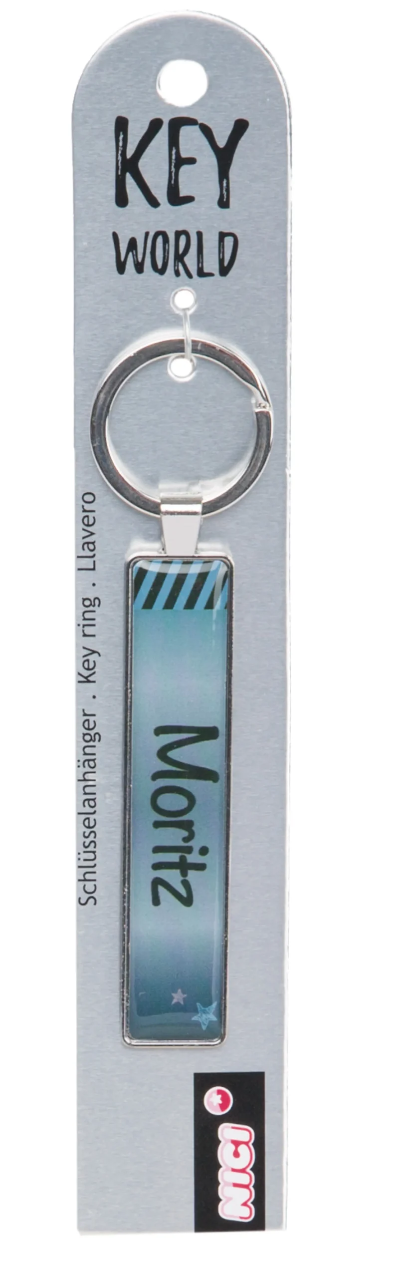 The metalic key ring with the inscription Moritz is in shades of blue and belongs to the NICI Key World collection. The slim design and the great colouring make the key ring a loyal companion.