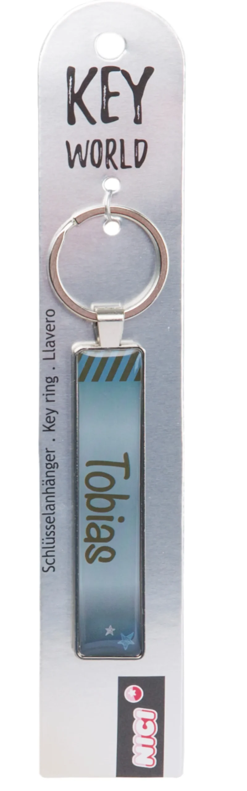 The metalic key ring with the inscription Tobias is in shades of blue and belongs to the NICI Key World collection. The slim design and the great colouring make the key ring a loyal companion.