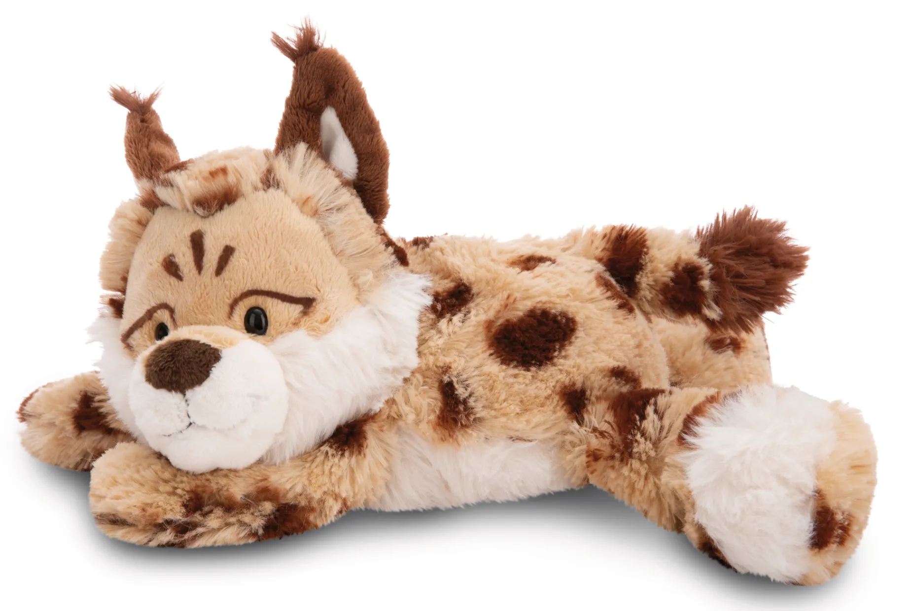 Lyka the lynx is the ideal play and cuddle friend for little fans of the big cats who find a typical house cat far too boring! With Lyka’s lynx-typical spotted plush fur, which is so fluffy and soft, even the wildest feline predator will become a pussycat. Lyka fascinates with her charming facial expression, the lovely details and her lying body shape. Whether for playing, cuddling or as a sleeping aid for the bed, the adorable Lyka is simply an enchanting gift idea that will tame little human felines! The lynx soft toy is part of the NICI GREEN product world. For NICI GREEN products, we almost exclusively use plush and filling material made from recycled materials. Primarily recycled PET bottles are processed into RPET for this purpose.