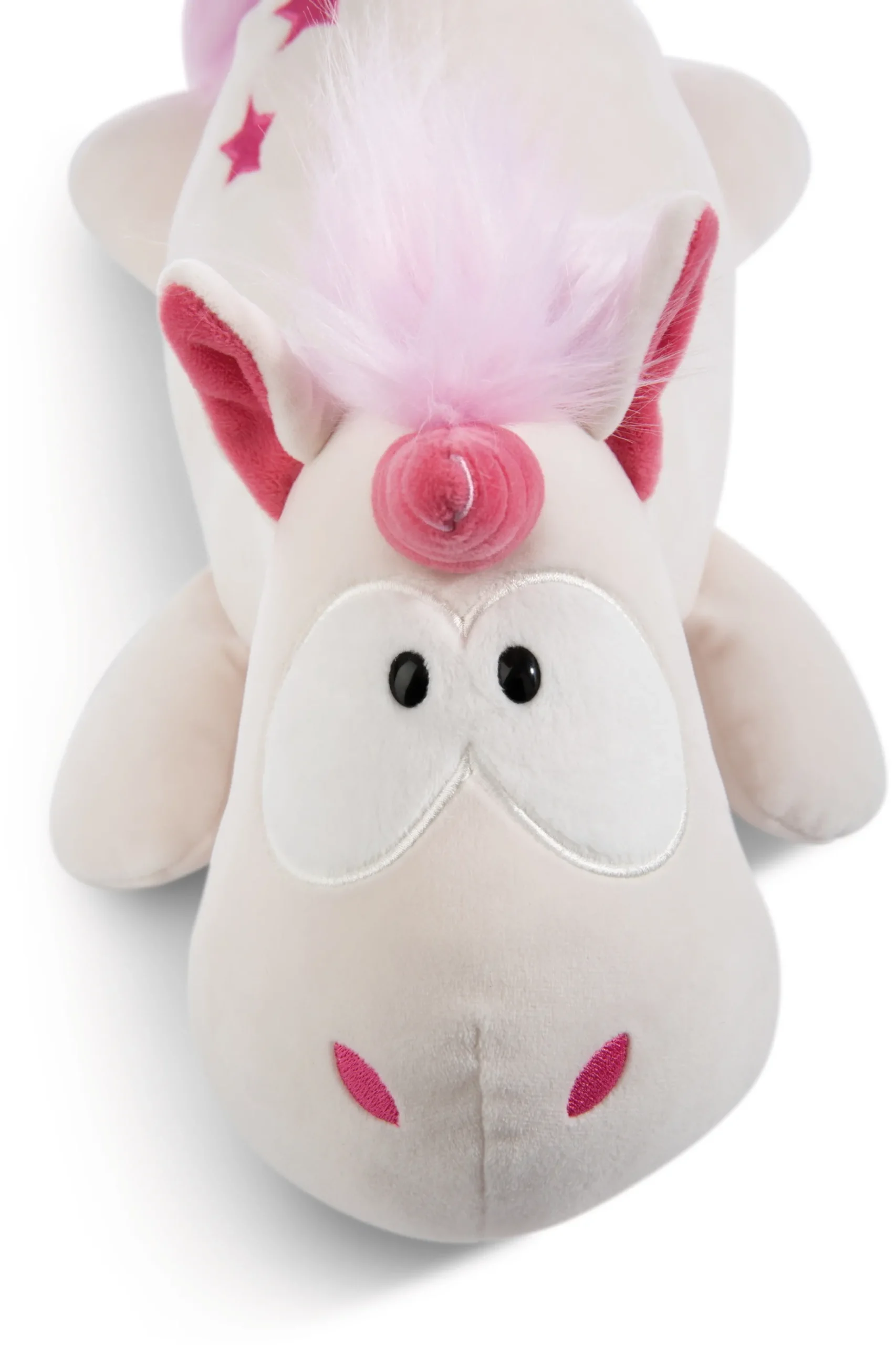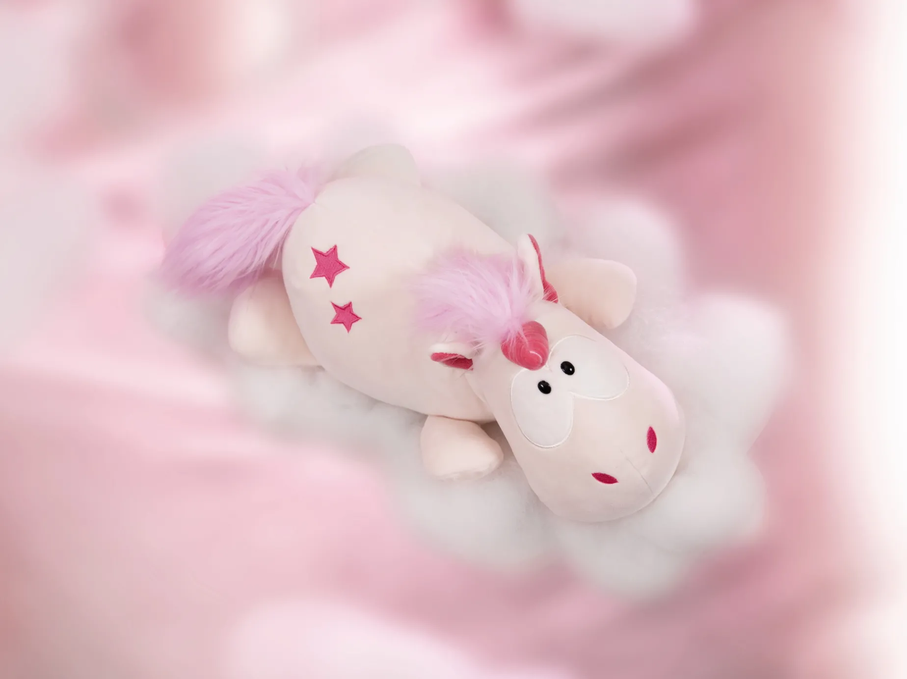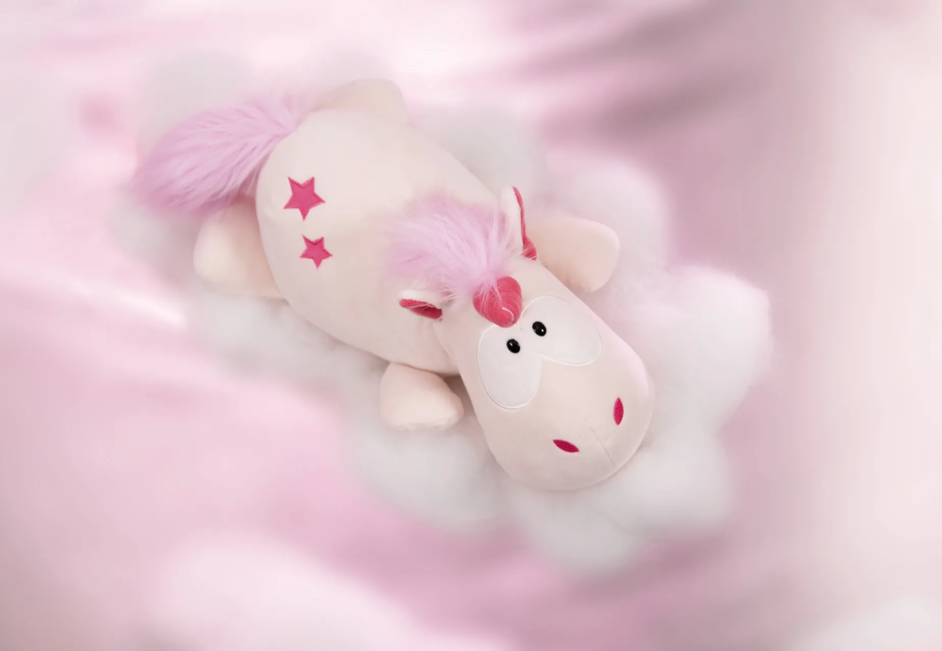 Theodor is a cuddly unicorn with big wide eyes, a wild pink mane and tail and two embroidered stars on the back. Theodor is great for playing, cuddling, snuggling and falling asleep. Designed in the proven NICI design, the different shades of pink stand out on the unicorn’s white body. The super-cuddly stretchy plush and filling, for a velvety tactile experience, is wonderful for grasping and feeling. Theodor can take up a lying position due to the nature of the material. Soft toy unicorn Theodor is an adorable plush toy that will bring lots of fun to unicorn fans of all ages.