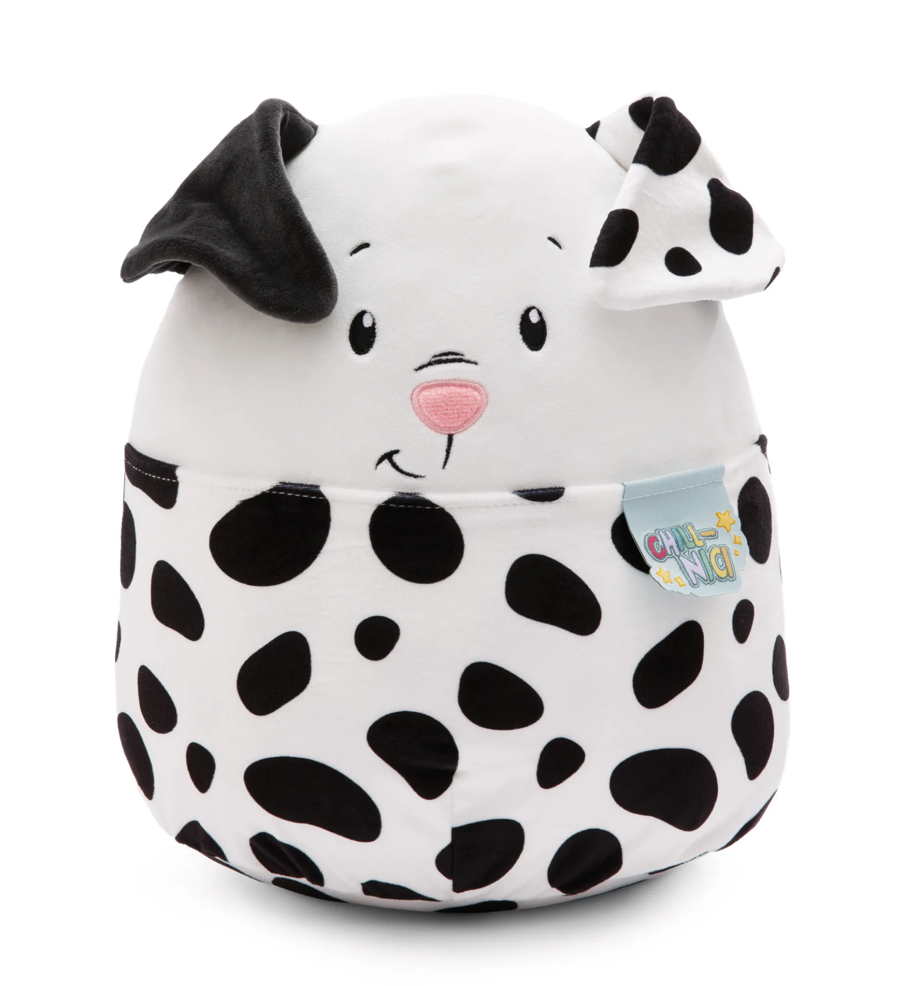 Soft, fluffy and squishy like a marshmallow – this could only be a super cuddly Chill-NICI soft toy! The cheeky NICI dalmatian with his white body and funny black spots will fascinate with his cute hanging ears, a fluffy, round body, a charming little face and a belly pocket that offers a hiding place for all your treasures. This adorable cuddly puppy made of high-quality NICI stretchy plush material is a gorgeous cuddle friend, cushion, couch buddy, fun collectible or loyal travel companion and makes hearts melt. A perfect gift for any occasion and any age!