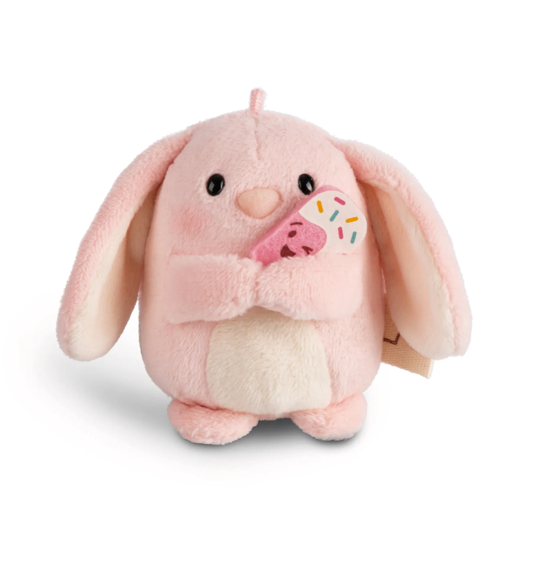 “Hello, I’m Pibu and I always have an open ear!” Pibu is a pink bunny with long floppy ears, a cute heart-shaped nose and a white tummy. Pibu has a size of 8cm and is made of cuddly soft NICI plush. Bunny Pibu is dressed in a fluffy strawberry costume in pink with green leaves and comes with its moodie, a small soft ice cream with colorful sugar sprinkles and cherished friend. The enchanting 3-in-1 soft toy set is packaged in a gift box featuring information about the name, character trait, play concept and the other mymochi characters. With the help of the interchangeable cuddly costumes, each mymochi can even slip into a different role. The loop on the head of each cute mymochi plush toy ensures that it can be attached to keys, necklaces, clothing or backpacks. In no time at all, each mymochi is transformed into a lifestyle product that is guaranteed to attract attention. The mymochi friends quickly become everyday companions, lucky charms, playmates, troubleshooters, cuddly friends and collector’s or barter items.