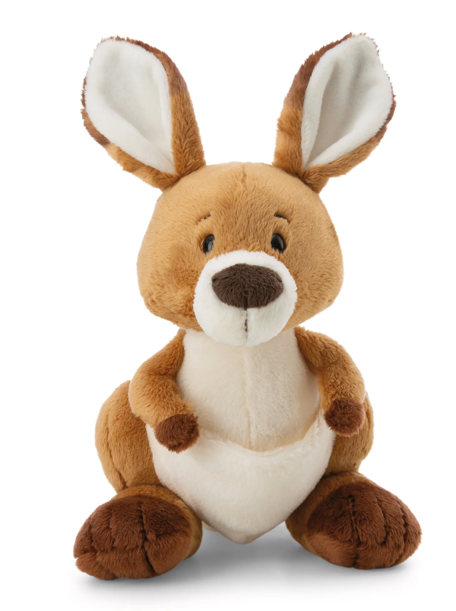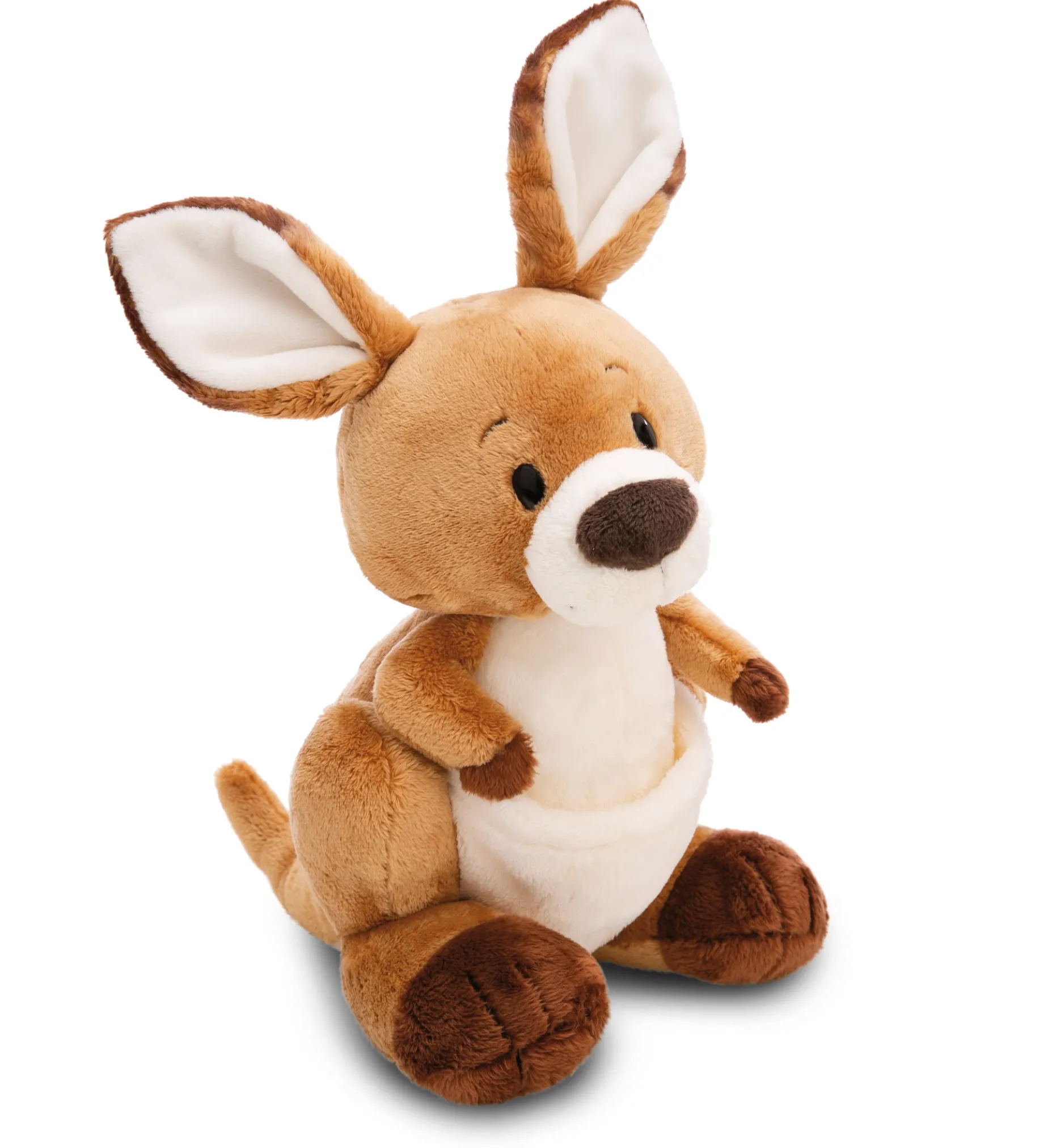 Discover the adorable plush kangaroo Kelly from the Wild Friends collection by NICI! The perfect cuddly toy for all ages! With her fluffy soft plush fur in the colours light brown and dark brown, a white belly, pouch and inner ears, Kelly is a real eye-catcher. Her large ears and cute face give her a distinctive charm. Kelly stands proudly on her strong legs, supported by a broad tail and brings the beauty of the Australian outback straight to your home. Whether as a gift for kids or as a fluffy decoration for Australia fans – with Kelly you always have a loyal companion by your side. The soft toy is part of the NICI GREEN product world. For NICI GREEN products, we almost exclusively use plush and filling material made from recycled materials. Primarily recycled PET bottles are processed into RPET for this purpose.