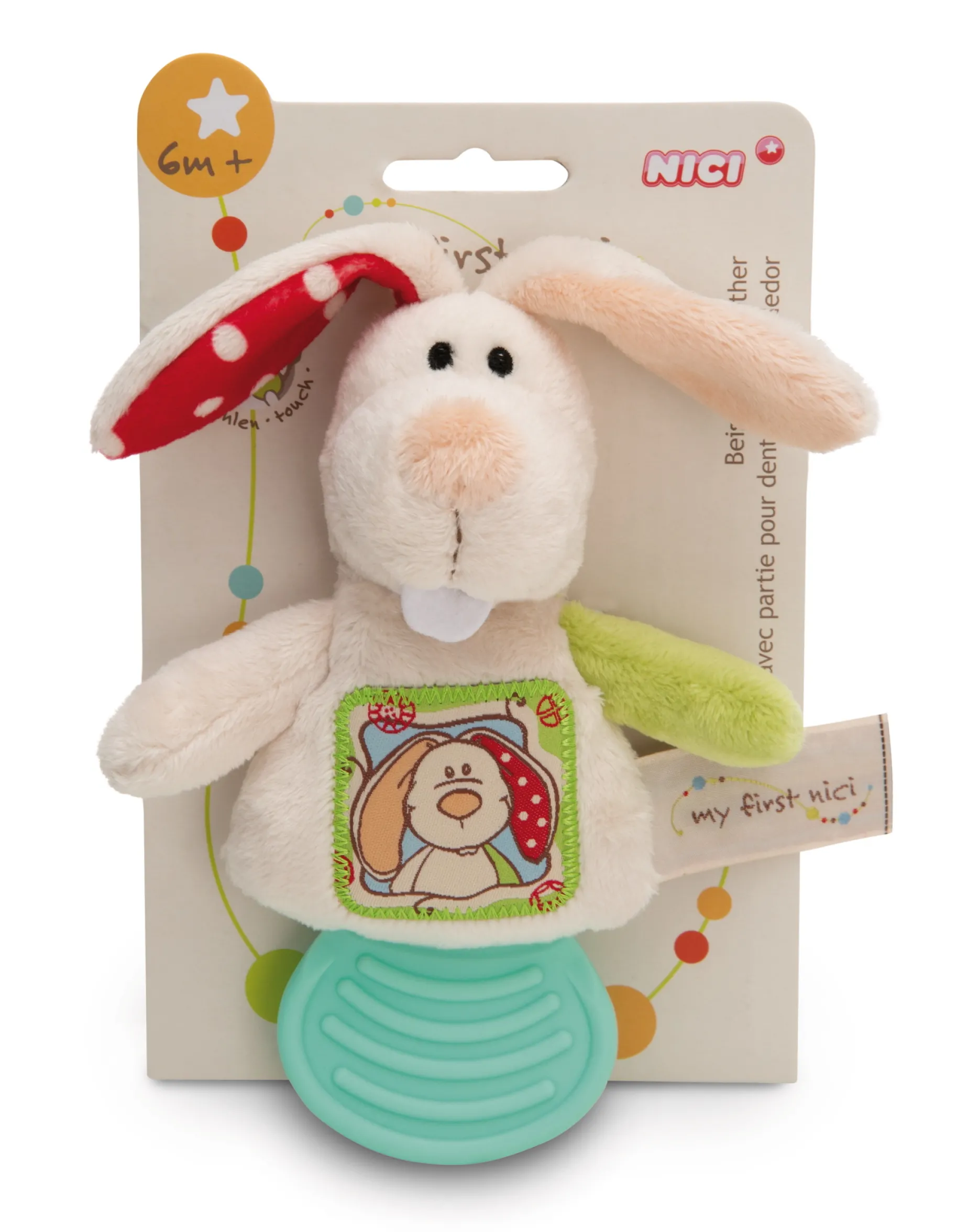 With the teething ring of bunny Tilli, a new citizen of the earth not only receives an incomparably sweet cuddly toy in the widely popular NICI look. Tilli is equally helpful for the development of the little ones: The blue teething surface is specially designed to train oral motor skills.