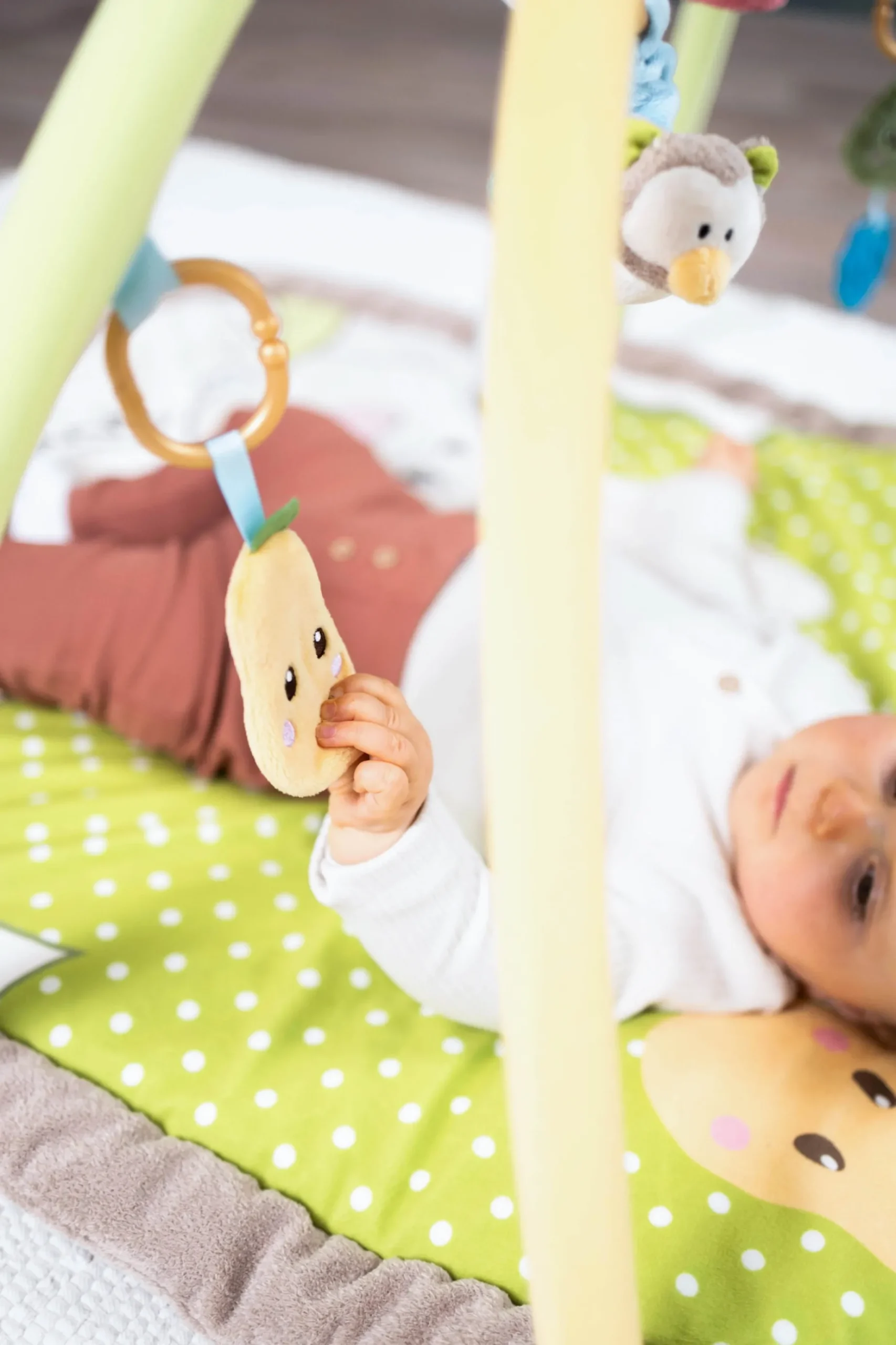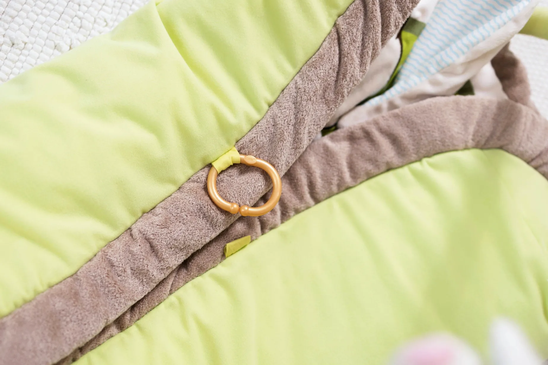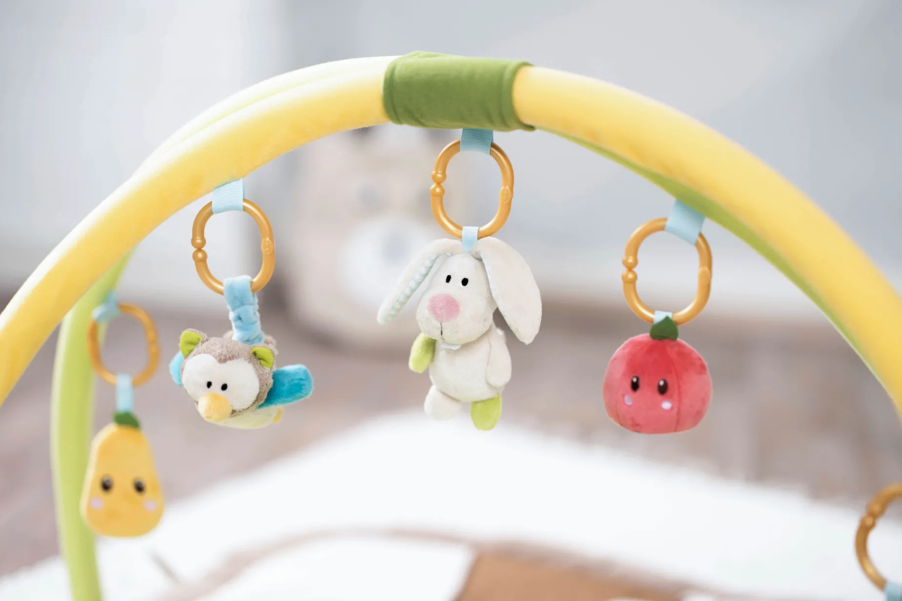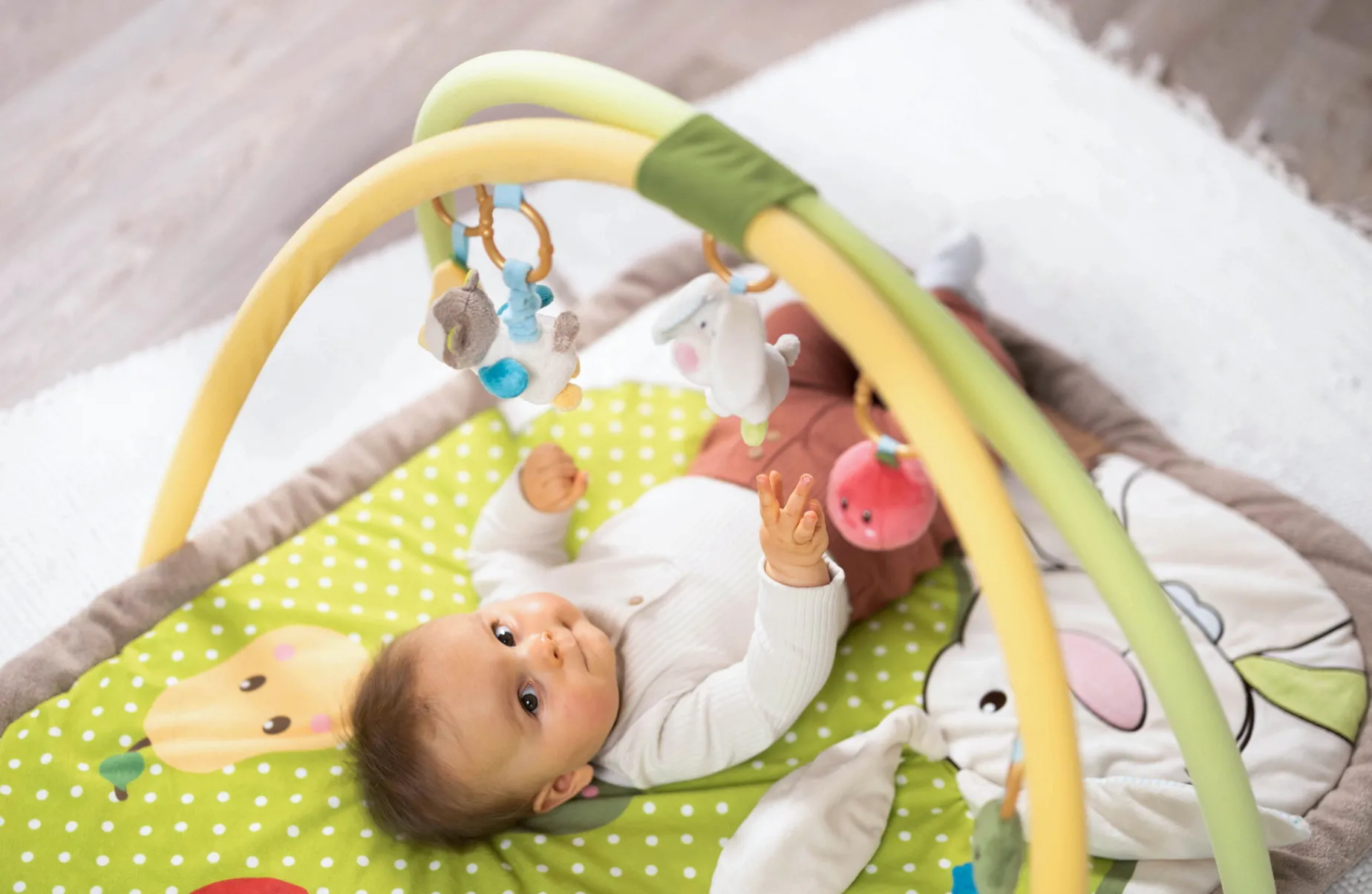 The My First NICI Activiy-Quilt with play cushion, play bow and 5 removable figures features a fresh colour scheme, an enchanting design, hidden functions, soft materials and a padded edge that offers baby optimal safety and comfort. The cuddly soft adventure blanket invites baby to feel, cuddle & play. Funny 3-D bunny ears provide lots of playtime fun. Hidden rustling paper, a little bell, a mirror, rattle and teething ring encourage the sense of touch and hearing and awaken baby’s natural curiosity. For babies from the age of 3 months, the soft play cushion enables a comfortable tummy position, playfully promotes motoric development and trains the child’s neck, back and throat muscles. With a locking ring, the My First NICI 3-D Activity Quilt can be folded and closed for storage. The carrying bag is perfect for on the go! Ideal as a gift for birth, christening or 1st birthday.