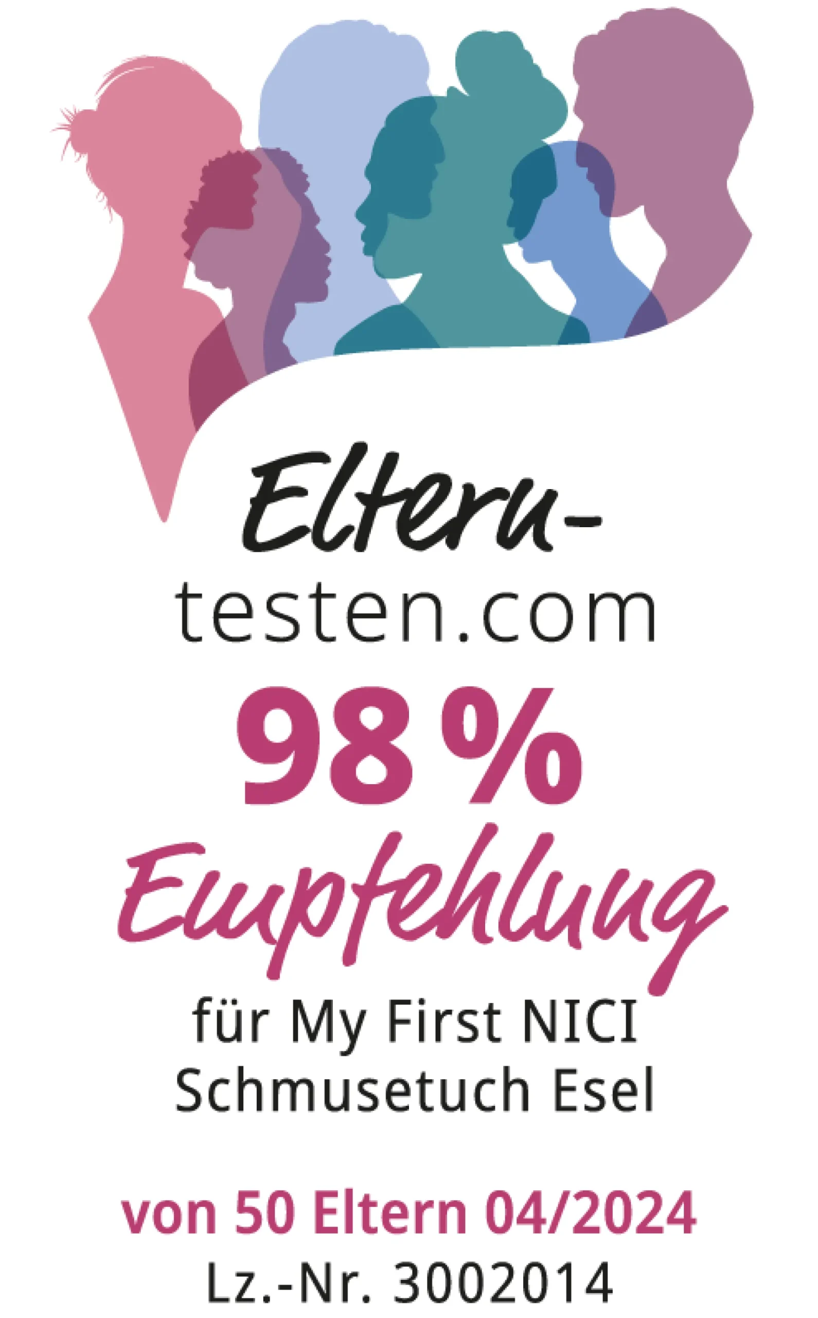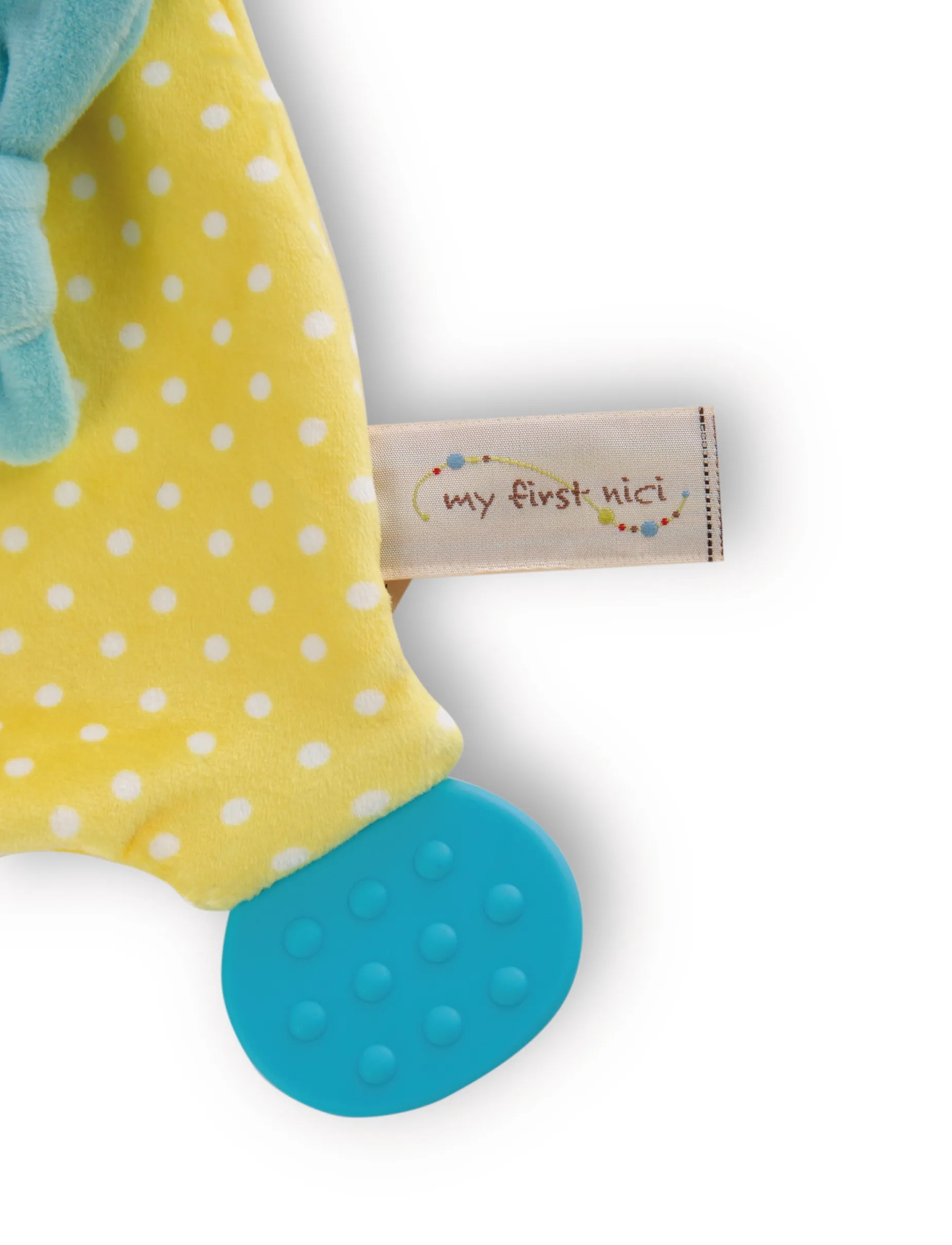 The comforter donkey with its long donkey ears is an indispensable companion for babies and toddlers. The super soft material and the knotted arms of the MyFirstNICI snuggle cloth, invite to touch, feel and cuddle. Thanks to the attachment ring, the comforter can be easily attached to all soothers, whether with or without handles. The integrated soft teether with structure helps baby with teething. A wonderful gift idea for welcoming a new baby!
