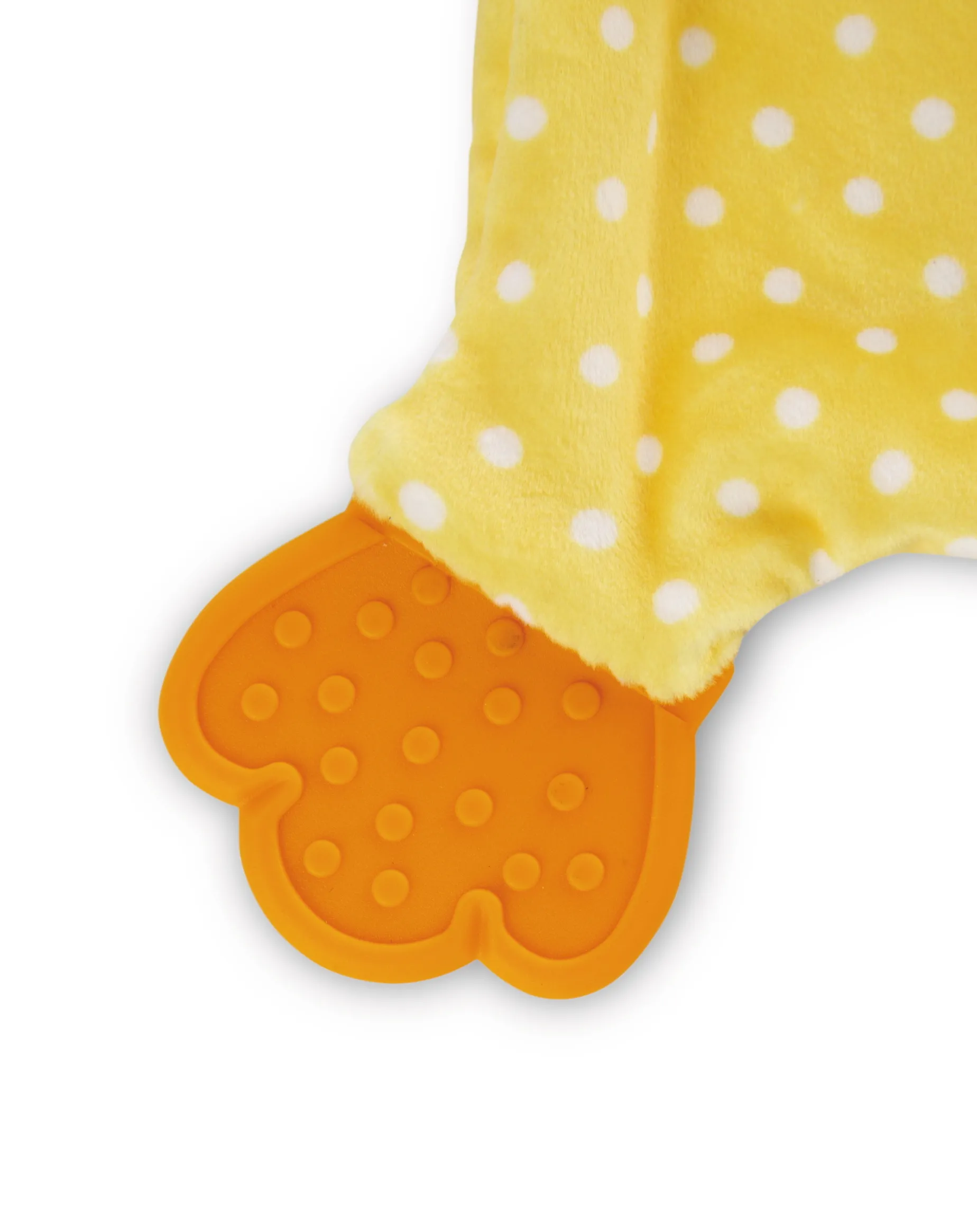The comforter duck is an indispensable companion for babies and toddlers. The super soft material and the knotted arms of the MyFirstNICI snuggle cloth, invite to touch, feel and cuddle. Thanks to the attachment ring, the comforter can be easily attached to all soothers, whether with or without handles. The integrated soft teether with structure helps baby with teething. A wonderful gift idea for welcoming a new baby!