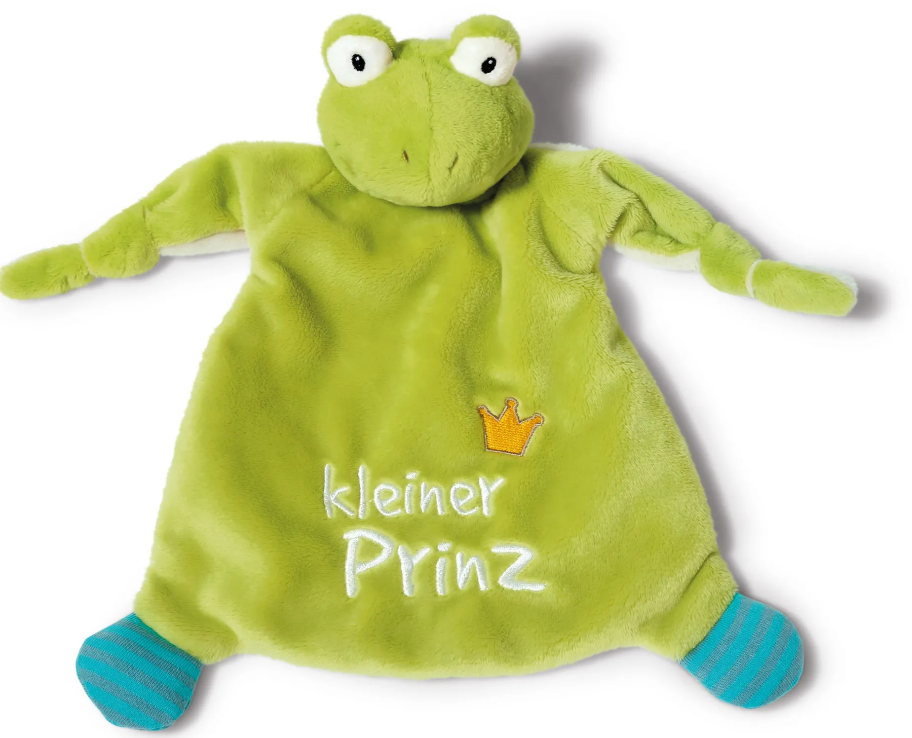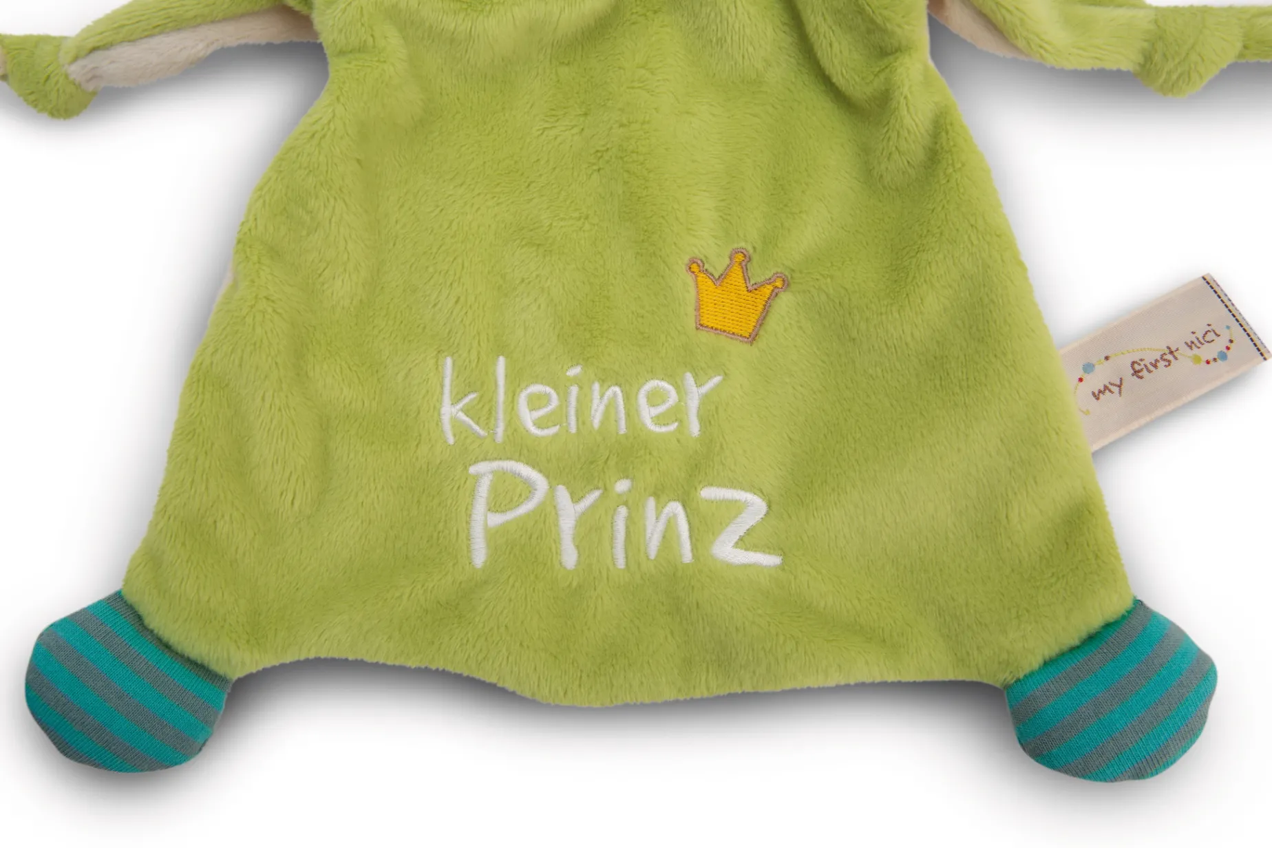 The comforter frog with Kleiner Prinz embroidery is the perfect gift for little baby boys for their birth or first birthday! The lovingly designed comforter made of fluffy plush in the best NICI quality is an invitation to cuddle and play and at the same time provides both comfort and security. The front features a lush green color, while the back comes in soft cream. The feet of the cute frog king create an enchanting accent with their turquoise and petrol-colored stripes and make the comforter a real eye-catcher. The enchanting frog comforter from My First NICI will take the hearts of little adventurers by storm as a gift!