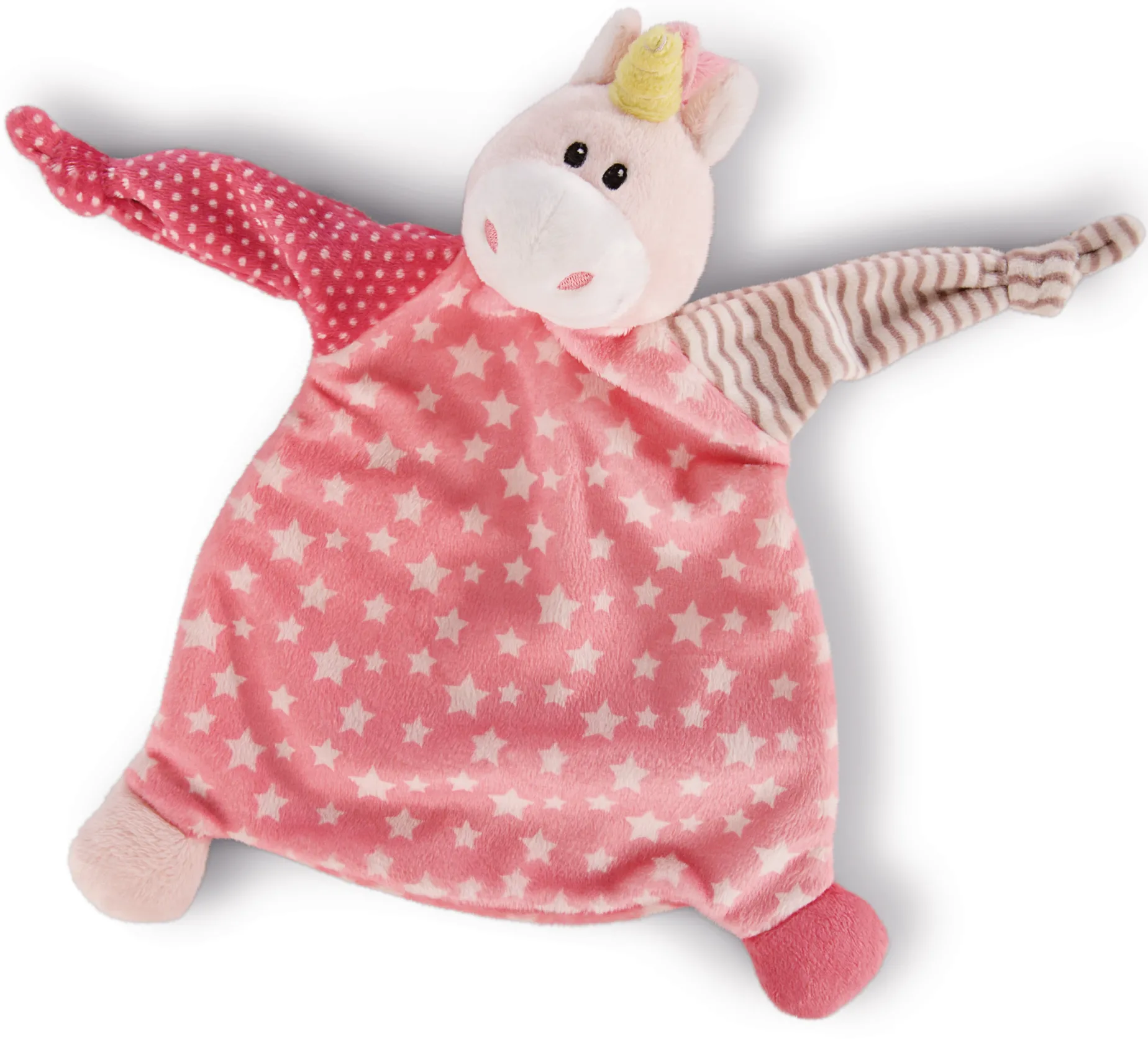 The comfort blanket unicorn Stupsi is made of 100 % cuddly soft NICI plush. The soft plush and knots in the blankies hands make it easy to grab for babies. A great gift for newborns.