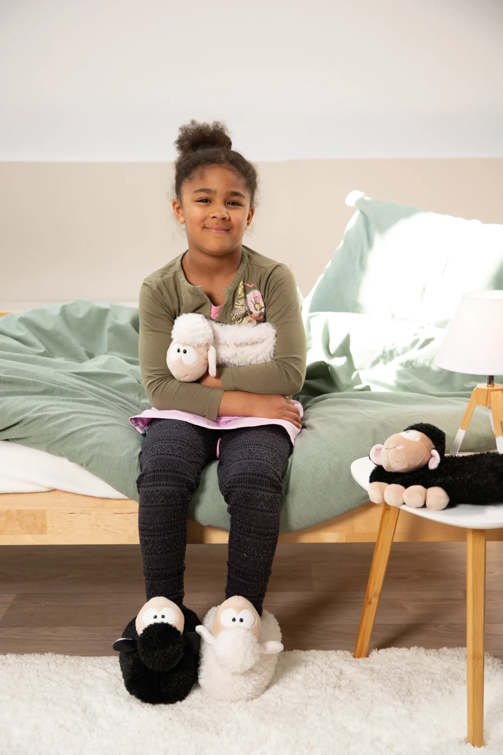 The fluffy hot water bottle in the shape of a sheep made from cosy soft NICI plush material is perfect for a cold winter evening, for muscle relaxation or when feeling sick. The one-piece plush cover in the shape of the black Wool*y Gang sheep is also thermally conductive and comes with a 350ml rubber hot water bottle. The compact size is perfect for children and is also suitable as a travel hot water bottle with a hanging loop. The hot water bottle is part of the NICI GREEN product world. For NICI GREEN products, we almost exclusively use plush and filling material made from recycled materials. Primarily recycled PET bottles are processed into RPET for this purpose.