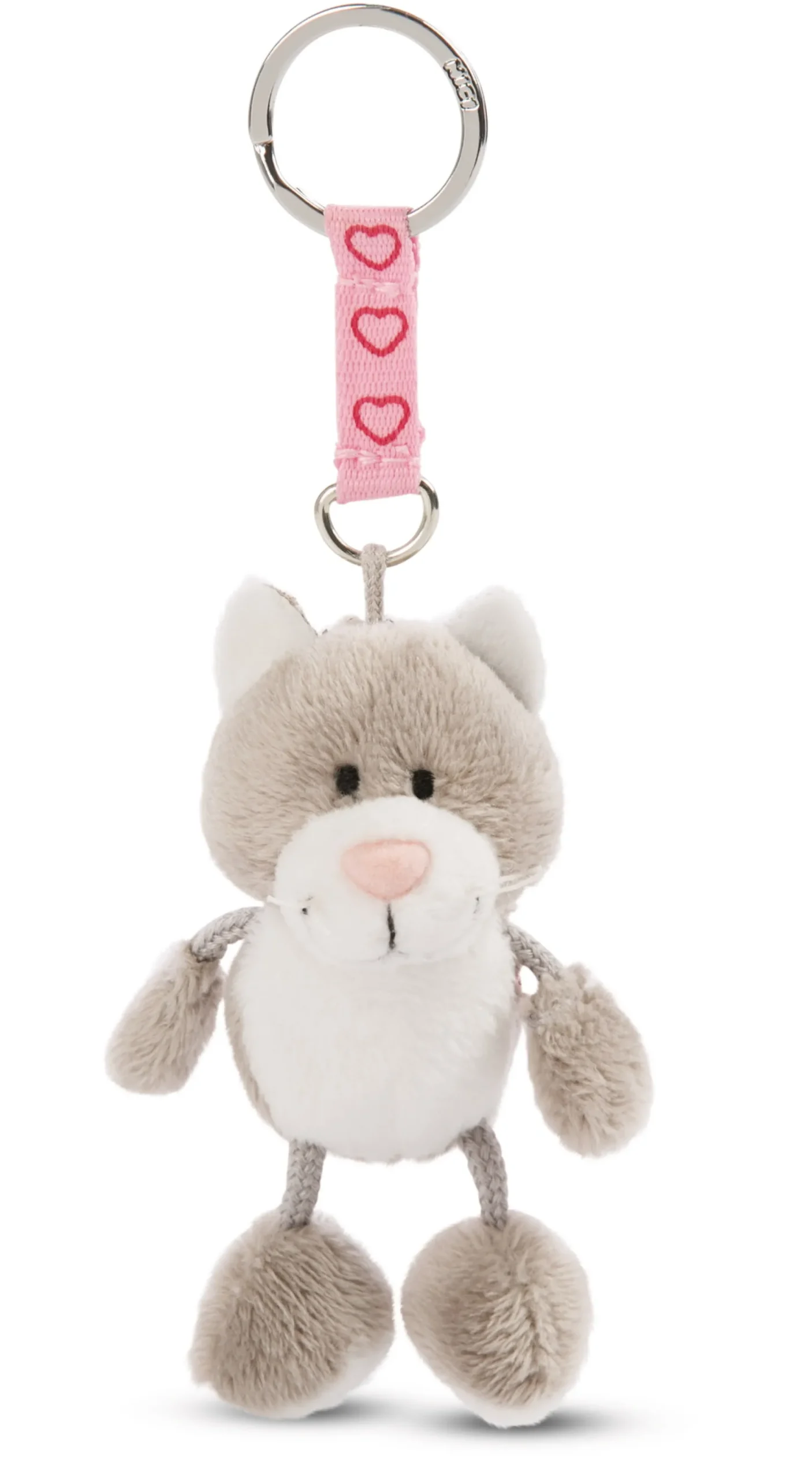 All love’ wishes you the Talismini cat. As a keychain with practical pink-colored fabric ribbon, which is decorated with hearts, she is looking forward to accompany you in your everyday life and bring you luck. Whether on a keychain, backpack or handbag, the gray NICI cat cuts a fine figure everywhere.