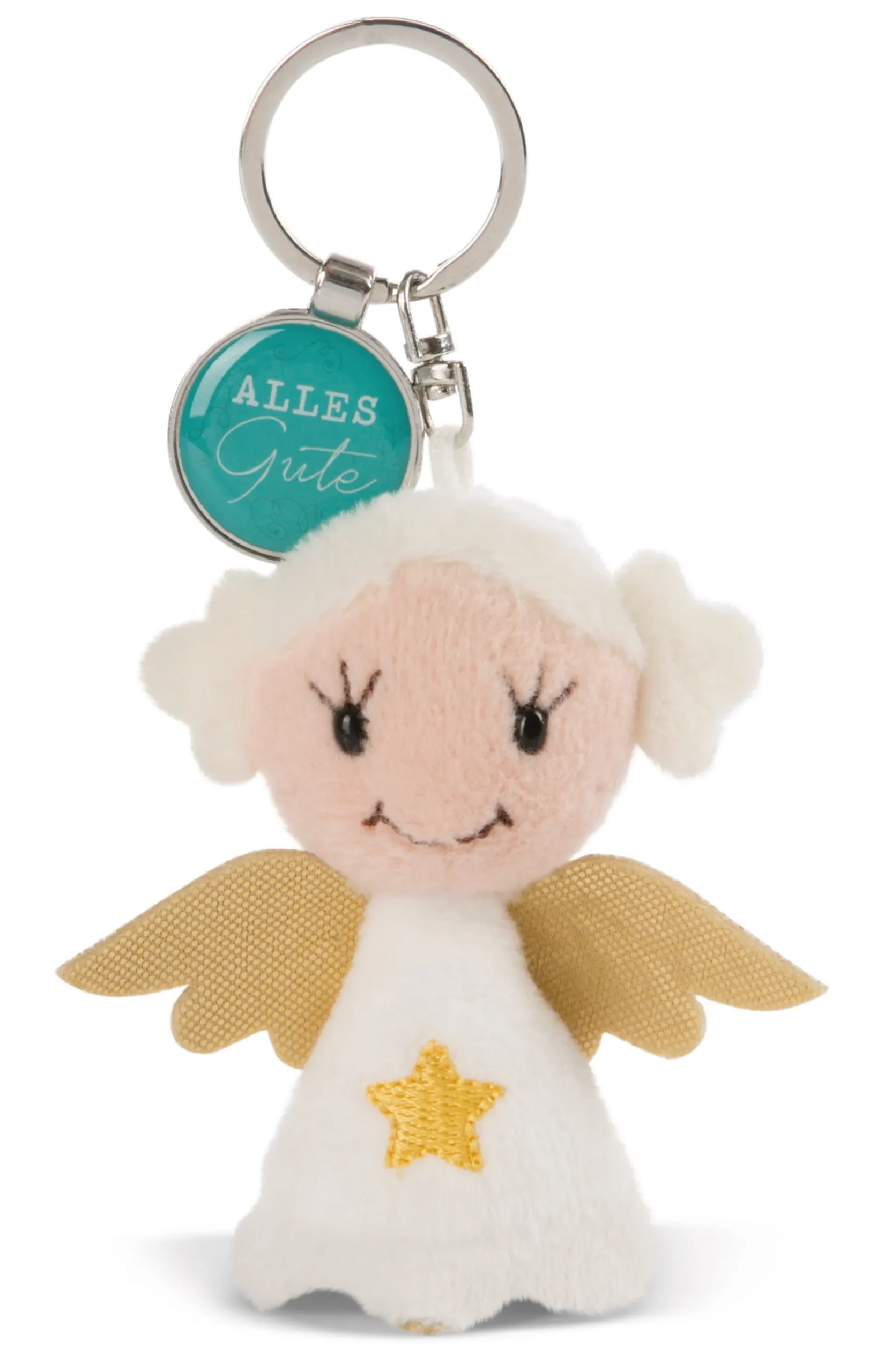 Everyone needs a guardian angel! The white NICI angel made of particularly fluffy NICI plush with golden wings and sugar-sweet eyes is simply adorable and enchants young and old alike with its golden embroidered star on the dress. The little NICI guardian angel is equipped with a sturdy metal key ring with a round turquoise charm pendant featuring the message Alles Gute. Whether on keys, bags, backpacks or school satchels – the 7cm NICI plush angel is a faithful companion in everyday life and a lovely gift for any occasion.