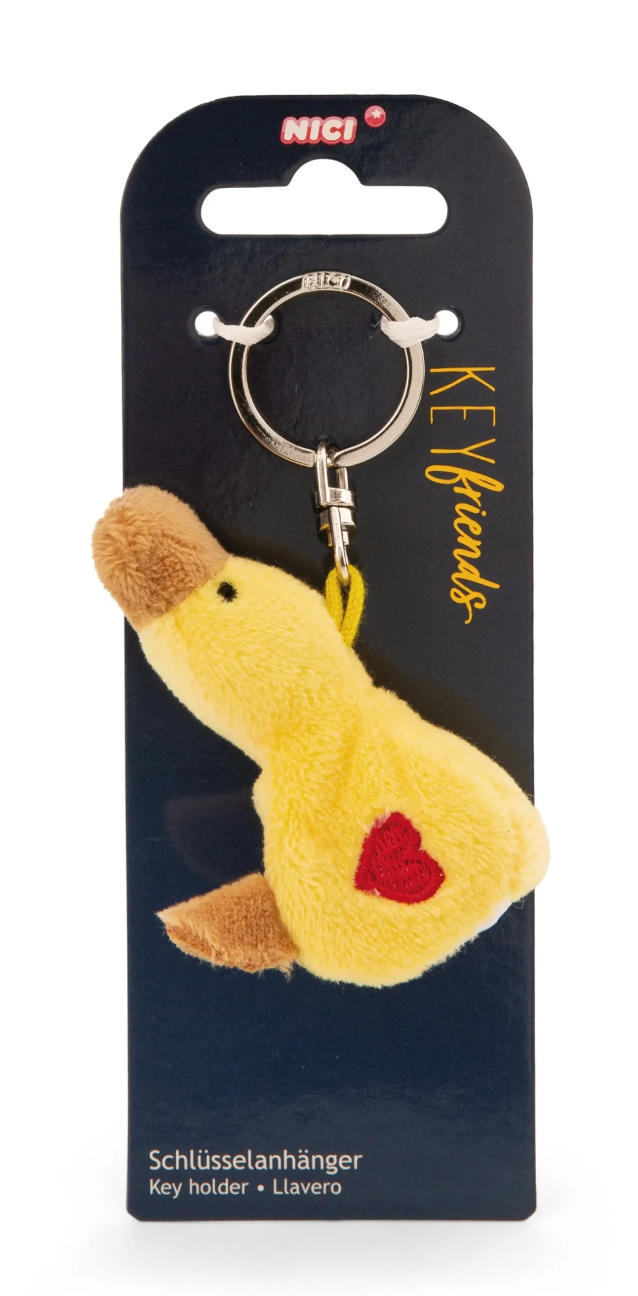 With the duck keyholder from the Key Friends collection by NICI, everyday life becomes a little fluffier! The enchanting plush pendant with sturdy metal key ring is not only a real eye-catcher, but can also be easily attached to satchels, bags or backpacks – perfect for children and adults alike! The yellow duck with the long beak impresses with her soft plush material and the red, embroidered heart symbol, which stands for love, friendship and affection. Whether as a cute souvenir or as a personalised gift – the duck plush pendant will put a smile on everyone’s face.