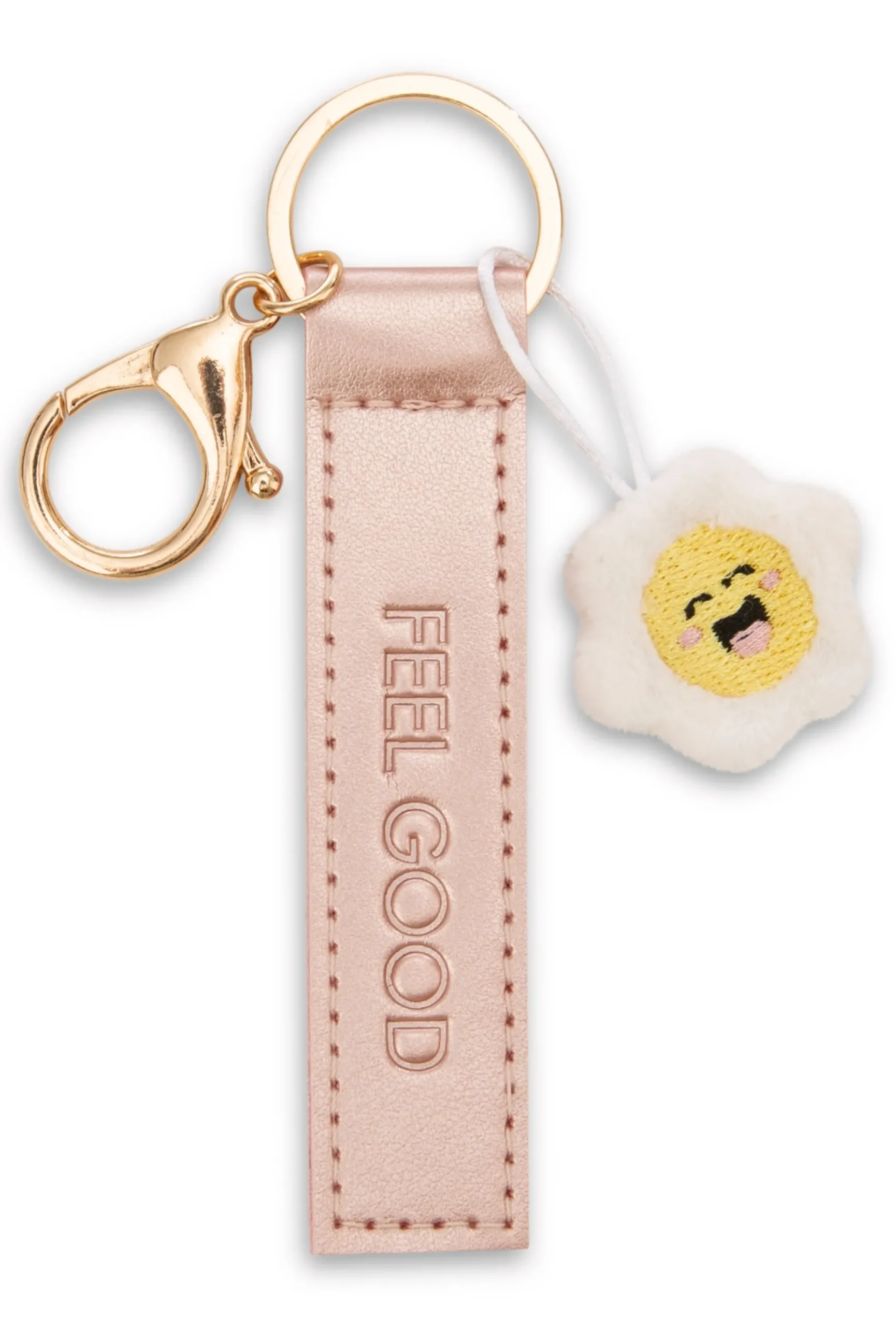 The keyholder and bag pendant in roségold from the Key Friends collection by NICI is the perfect everyday companion! The cool pendant with carabiner combines functionality with a trendy design and is a real fashion statement. With the embossed message ‘Feel good’ on a high-quality PU band, the pendant sets a real lifestyle trend. A small, jolly flower made of plush completes the overall look and conjures up a touch of playfulness. Whether on a bunch of keys, backpack, suitcase or as a fashion accessory – the Key Friends keyholder adds that certain something to any look. Ideal as a gift for yourself or as a lovely little present for friends and family!