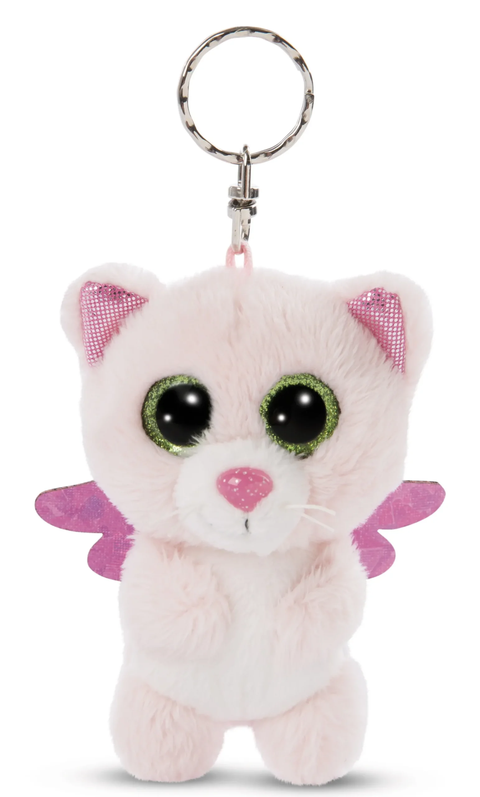 GLUBSCHIS – the Original only with the NICI star! Sugar-sweet, soft and cuddly – that’s Glowy Malli, the pink guardian angel cat with pink glitter wings and green glitter eyes. GLUBSCHIS guardian angel cat Glowy Malli with her soft pink plush body made of fluffy NICI plush is guaranteed never to let her favorite human down and always takes good care of him or her. As a 9cm plush pendant, she holds the bunch of keys together with a sturdy metal key ring on her head and decorates every purse, backpack and satchel. A magical gift for GLUBSCHIS and cat fans of all ages. (c) 2025 Carletto, licensed by NICI GmbH
