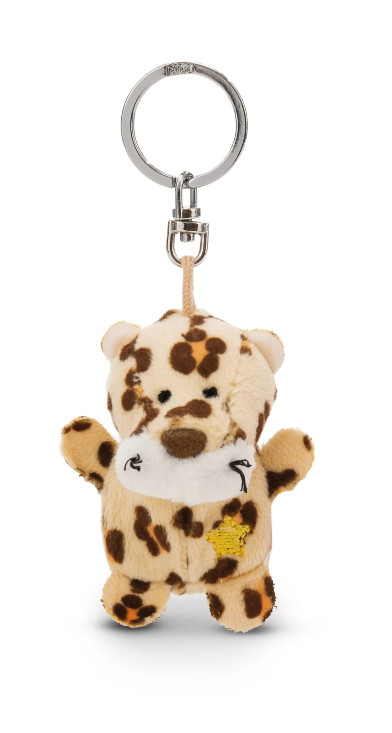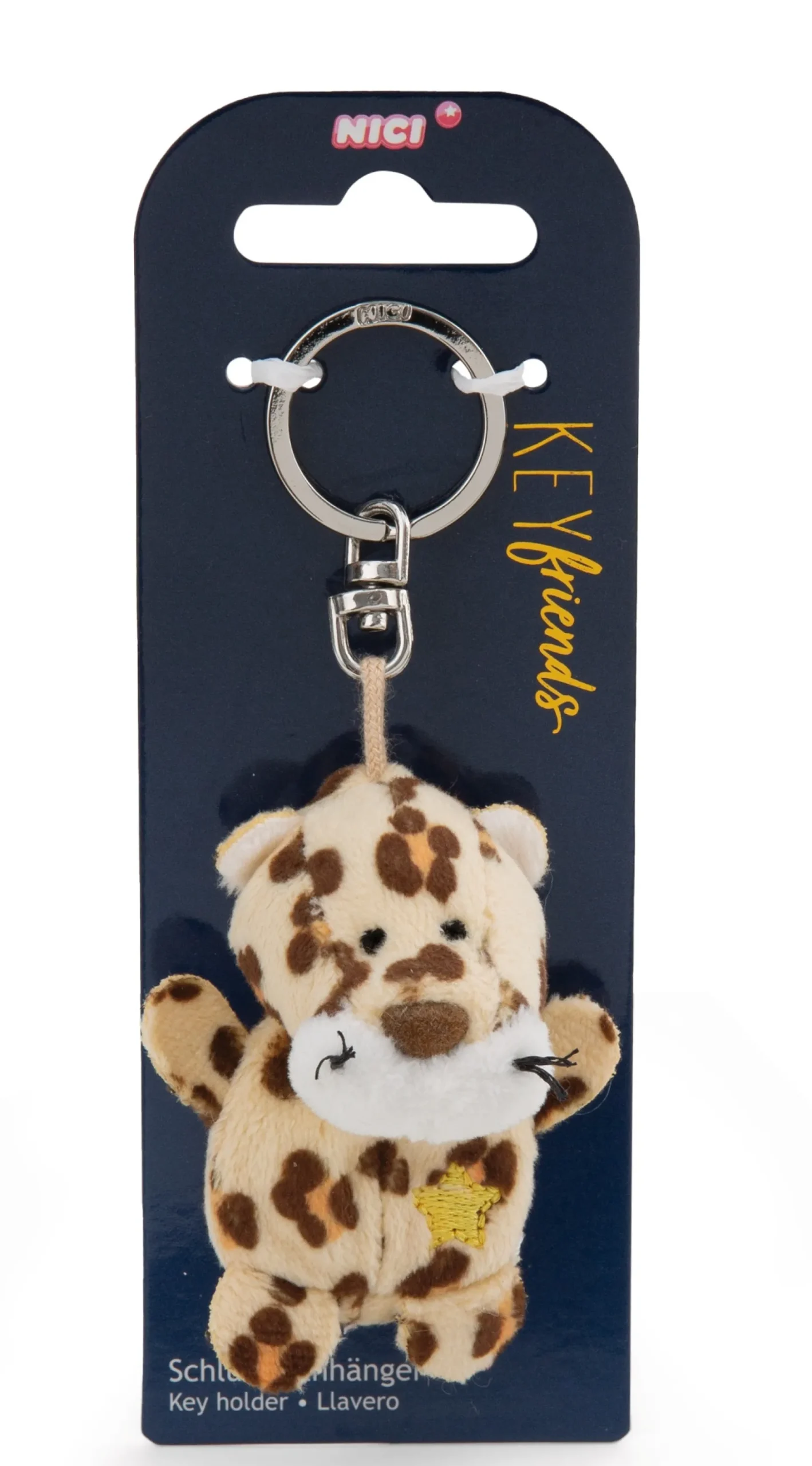 With the leopard keyholder from the Key Friends collection by NICI, everyday life becomes a little fluffier! The enchanting plush pendant with sturdy metal key ring is not only a real eye-catcher, but can also be easily attached to satchels, bags or backpacks – perfect for children and adults alike! The typical spotted leopard impresses with his soft plush material and the embroidered yellow star, which stands for hope and guidance. Whether as a cute souvenir or as a personalised gift – the leopard plush pendant will put a smile on everyone’s face.