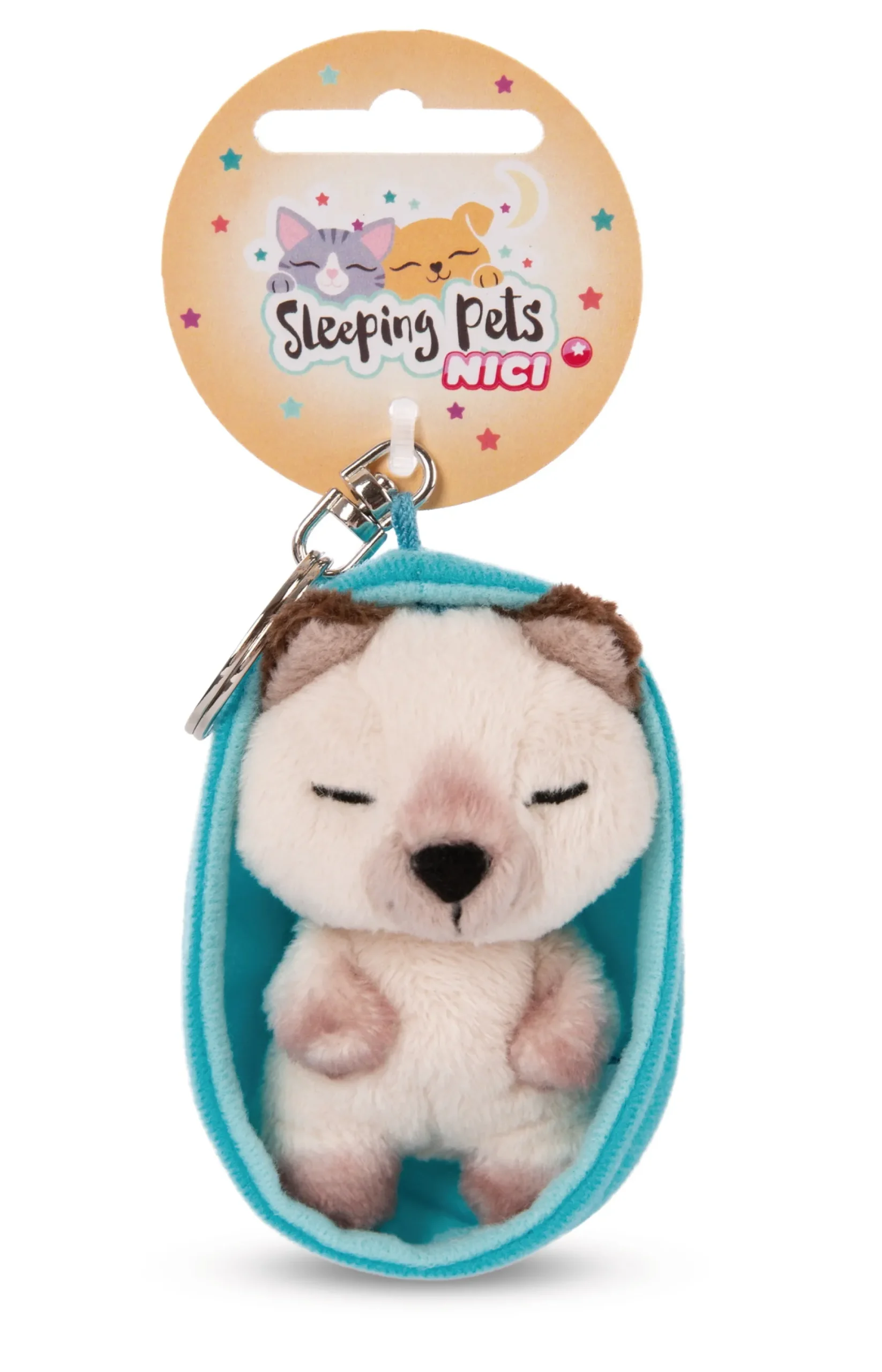 Meow – I’m tired! The cute Siamese kitten will delight you with its cute sleeping eyes and the fluffy soft NICI plush. The separate, blue plush basket in which the kitten has made itself comfortable also comes with lovely details. The sturdy key ring of the 8 cm Sleeping Pets cat keyholder ensures a secure fastening on the keys, backpack or school bag. From now on, the sleeping kitten is a loyal companion for young and old cat fans. Whether for a birthday, as a lucky charm or a small gift – the Sleeping Pets cat is always a great gift idea.