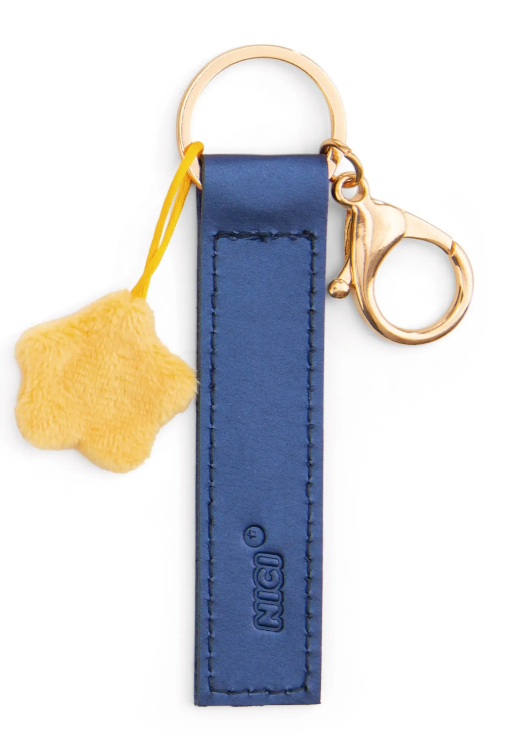 The blue keyholder and bag pendant from the Key Friends collection by NICI is the perfect everyday companion! The cool pendant with carabiner combines functionality with a trendy design and is a real fashion statement. With the embossed message ‘Wundersammler’ on a high-quality PU band, the pendant sets a real lifestyle trend. A small, yellow star made of plush completes the overall look and conjures up a touch of playfulness. Whether on a bunch of keys, backpack, suitcase or as a fashion accessory – the Key Friends keyholder adds that certain something to any look. Ideal as a gift for yourself or as a lovely little present for friends and family!