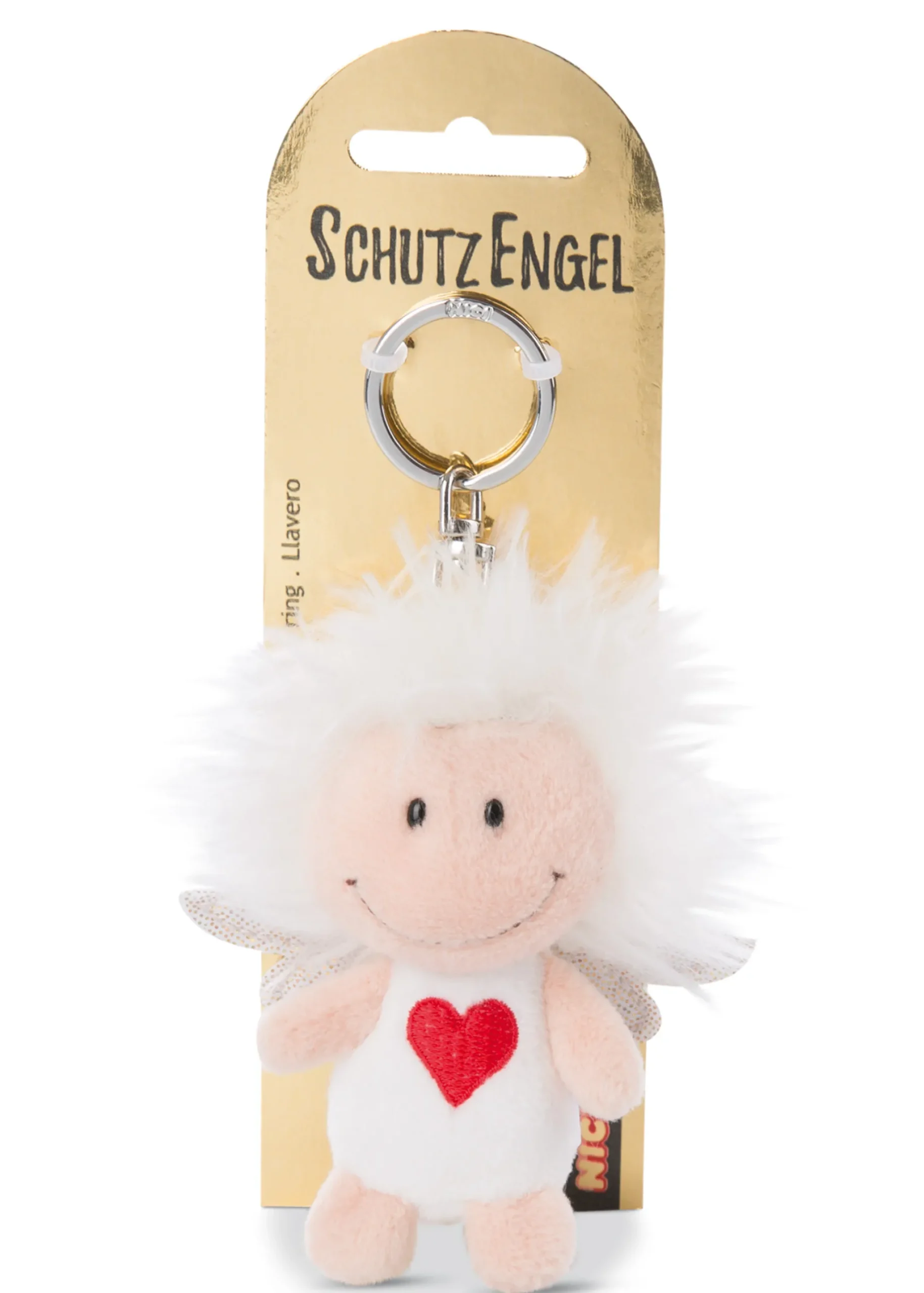 The little white-haired angel with the wild hairstyle accompanies its owner as a key ring and looks after him. With the red heart on his chest he is especially cute. Thanks to the metal ring the fabric key ring can be securely attached almost anywhere. Whether on a backpack, handbag, pencil case or key ring – our NICI angels protect their companions everywhere.