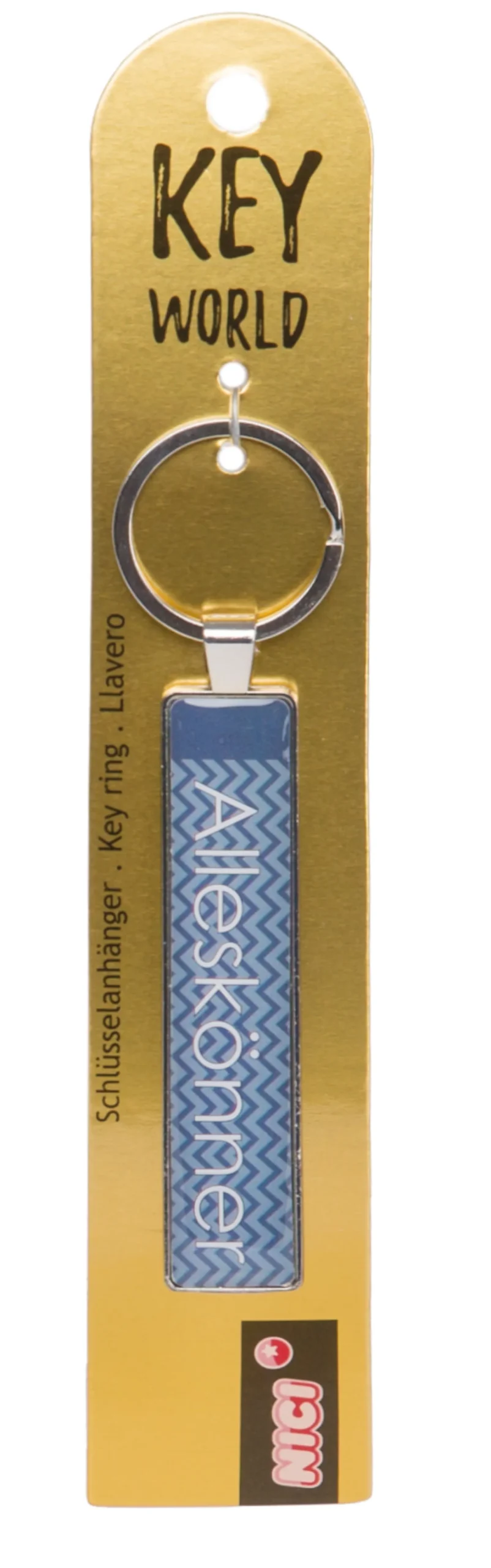 The metalic key ring with the cheeky slogan Alleskönner is part of the NICI Key World collection. The slim design and the great colouring make the key ring a funny gift.
