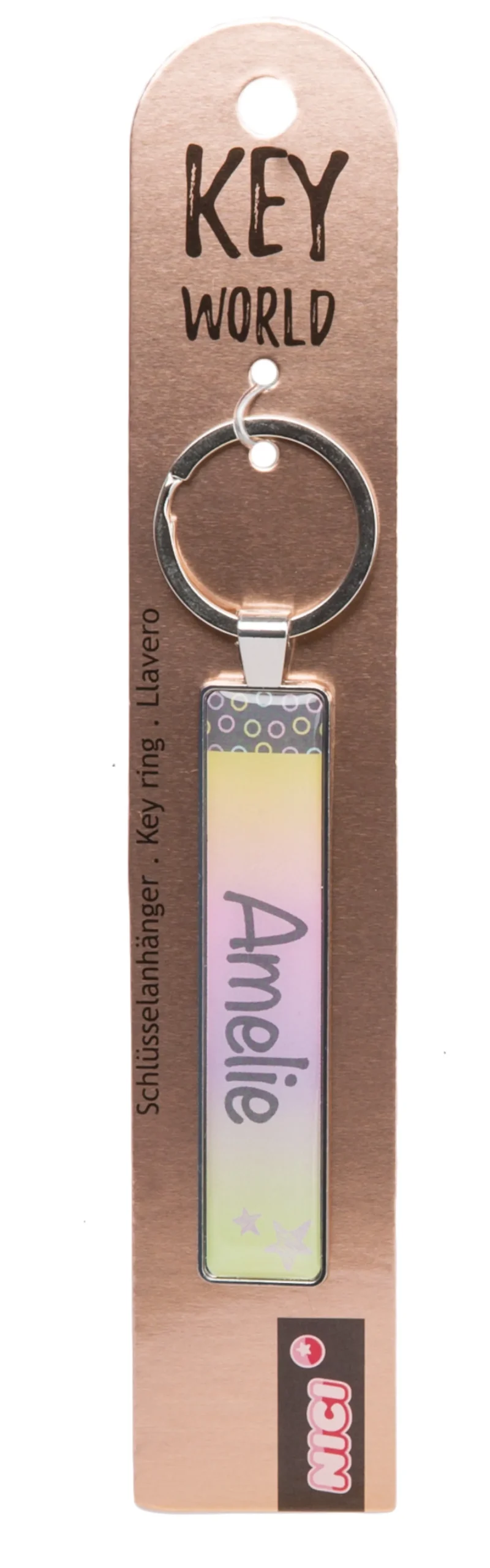 The metal key ring with the inscription Amelie comes with a high-quality key ring and a pendant in pastel tones. So it is a great companion!