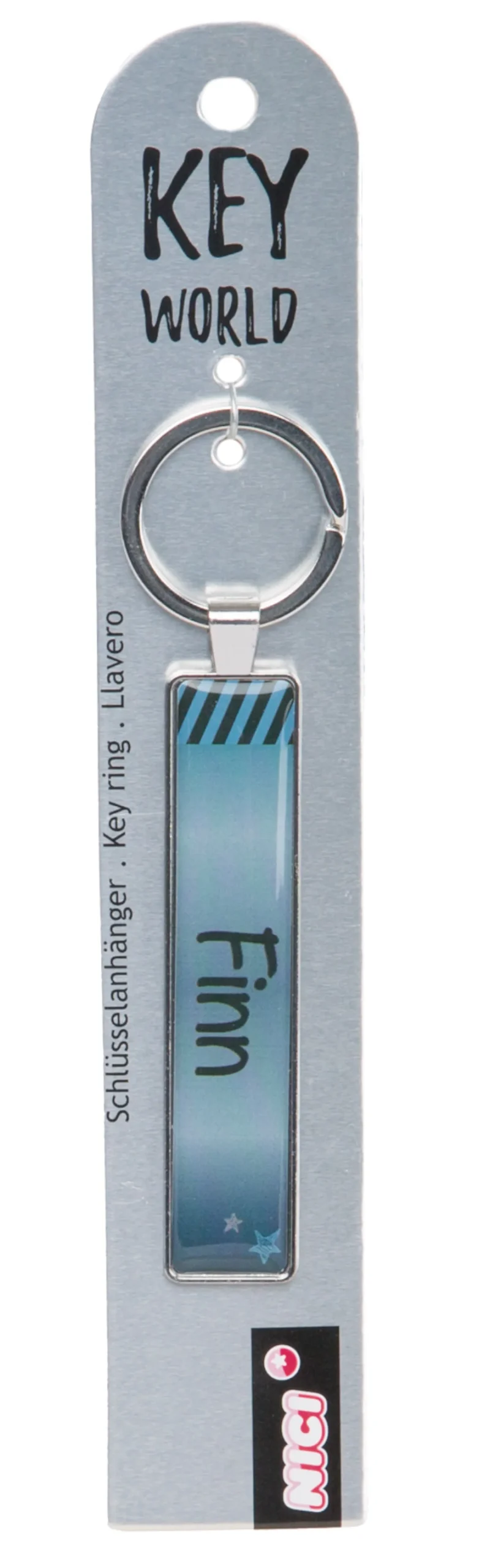 The metalic key ring with the inscription Finn is in shades of blue and belongs to the NICI Key World collection. The slim design and the great colouring make the key ring a loyal companion.