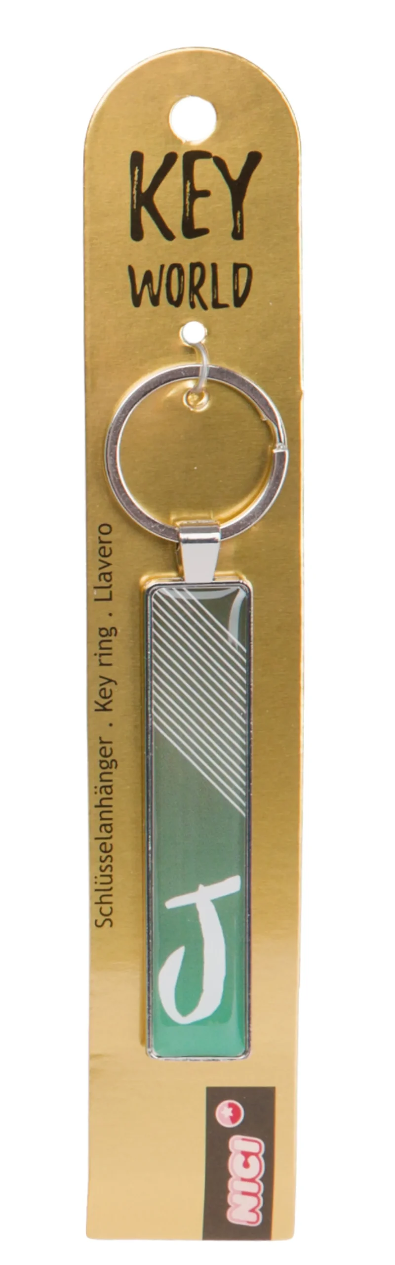 The letter J adorns the stylish metal key ring. With the high-quality key ring and the slim design, the key ring of the NICI Key World collection is a real eye-catcher.