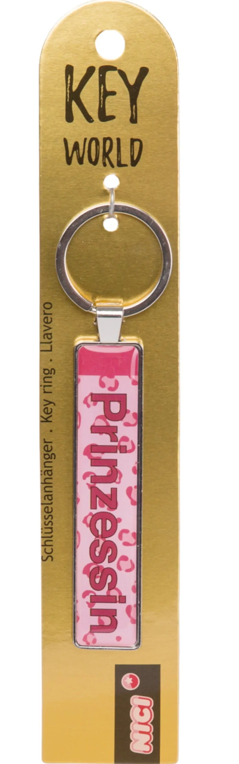 The metalic key ring with the cheeky slogan Prinzessin is part of the NICI Key World collection. The slim design and the great colouring make the key ring a funny gift.