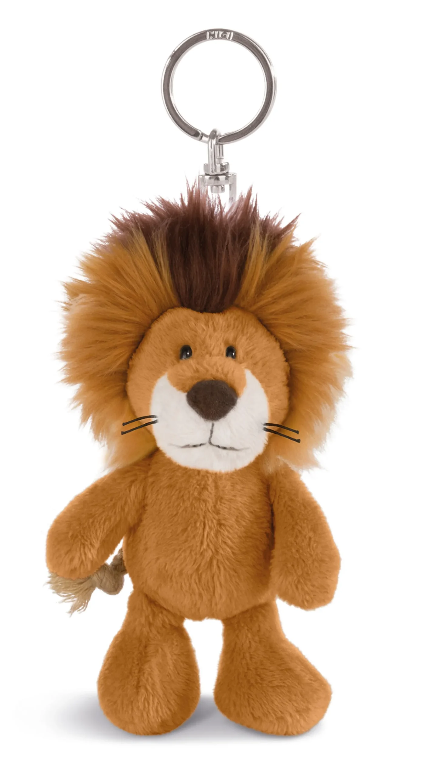 Lion Kitan as keyring pendant. With his gorgeous beige mane with dark brown strands and black whiskers he is an eye-catcher on your bunch of keys.The metal keyring is easily attached to your keys and makes it easier to find them in your bag. A useful and cute companion.