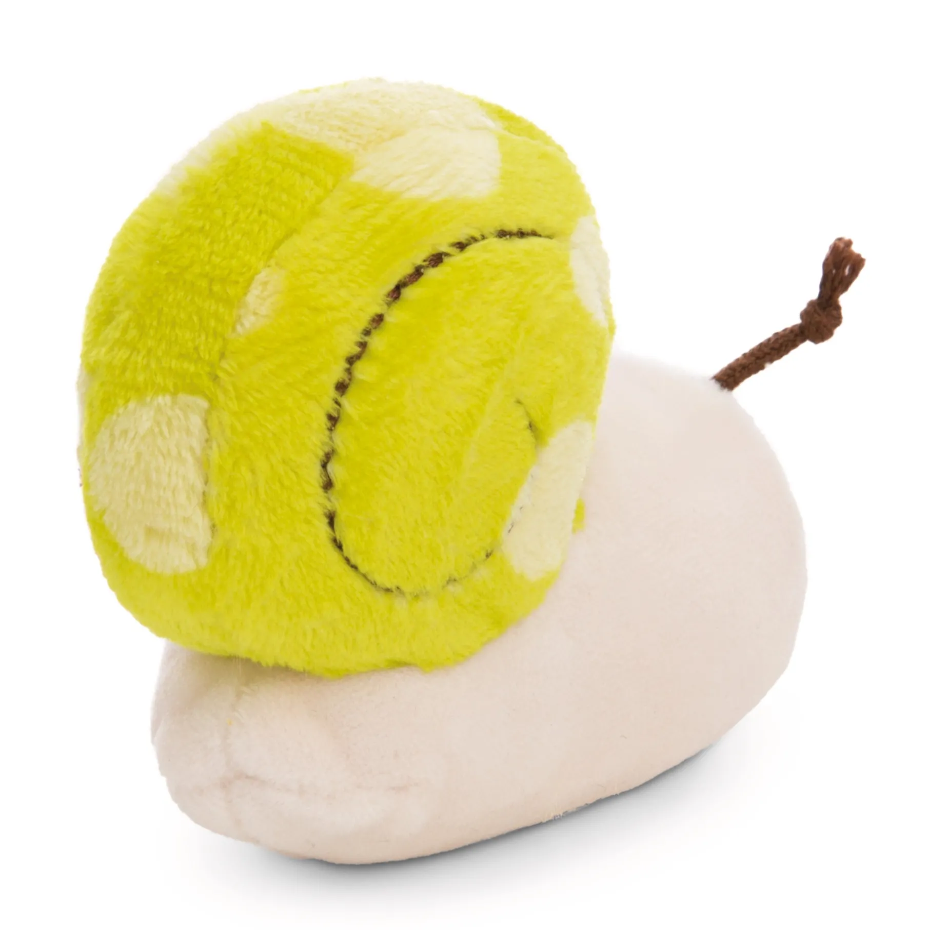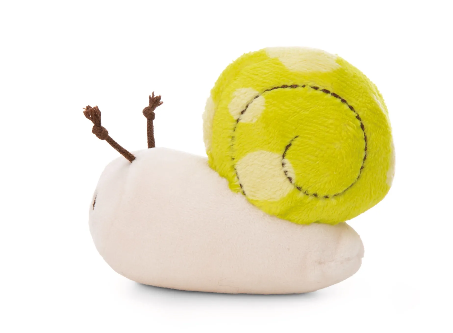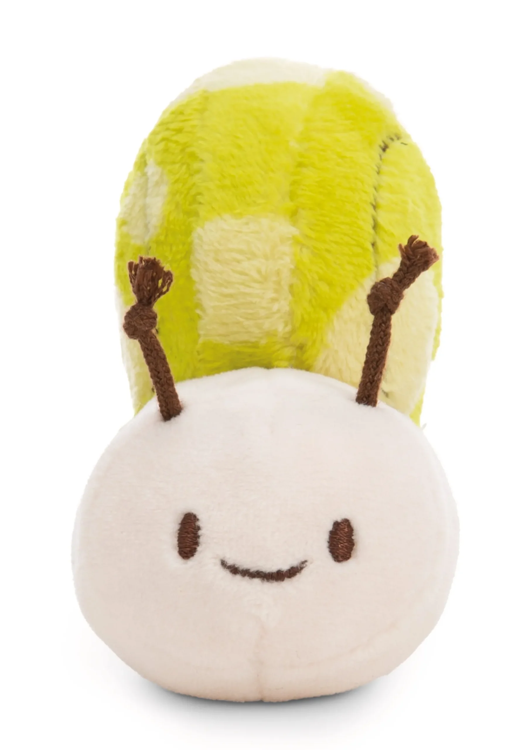 The adorable little white plush snail is enchanting with its grass green snail shell with a light green pattern made of cuddly soft plush material. With its friendly face and long, brown antennae on its head, it is a real eye-catcher. The highlight of this cute plush snail is the little banner it wears on its shell. With the message “Have a slow day”, it invites you to take a break and enjoy the day in peace. This cute plush snail is not only a great gift for children of all ages, but also for adults who enjoy cute accessories. Whether as a decoration on the shelf or as a cuddly companion on the sofa, it always spreads a good mood and cozine