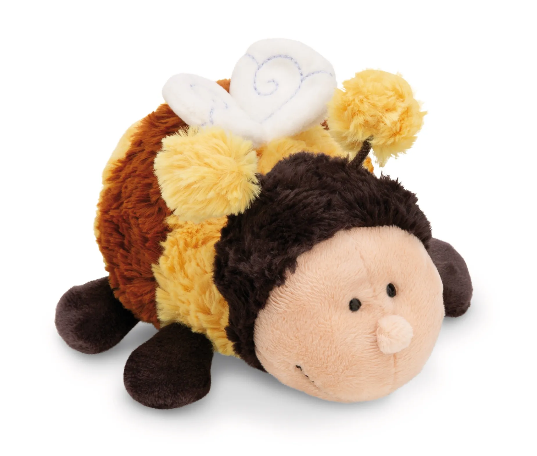 What’s striped yellow and brown and humming happily to itself? It can only be the funny bumblebee Beelinda, who has made herself comfortable on her tummy and is letting the warm spring sun shine on her little white wings. The adorable bumblebee made of fluffy NICI plush has a cute look and a soft body with funny yellow antennae on her head. An exceptionally beautiful gift for plush fans of all ages. Beelinda is part of the NICI GREEN product world. For NICI GREEN products, we almost exclusively use plush and filling material made from recycled materials. Primarily recycled PET bottles are processed into RPET for this purpose.