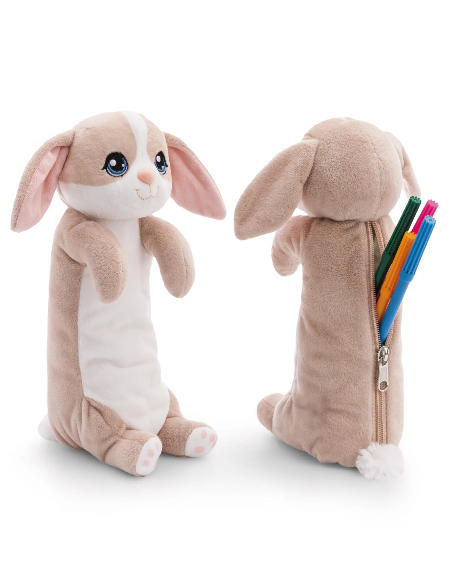 Is this bunny a cuddly toy or a pencil pouch? The fluffy soft, brown and white hare with its long floppy ears combines the beautiful with the practical. The bunny made of NICI plush material sits in an upright position thanks to the padding in the buttocks and can be filled with all kinds of writing utensils or cosmetic items. A zip on the back of the cute Pouchimals bunny ensures that nothing can fall out. The Pouchimals pencil case is not only unique and a real eye-catcher, but also an enchanting gift for all ages and genders.