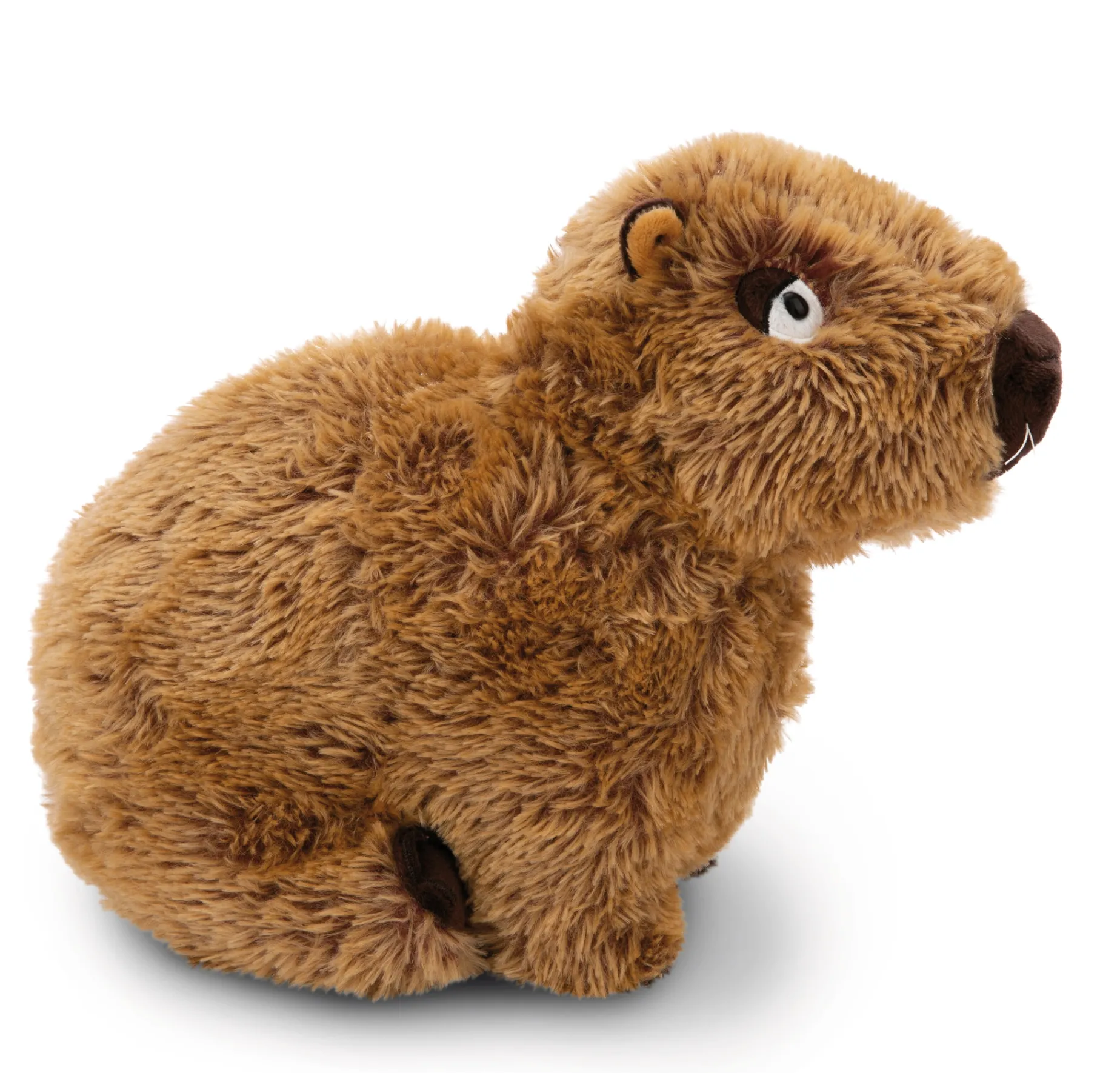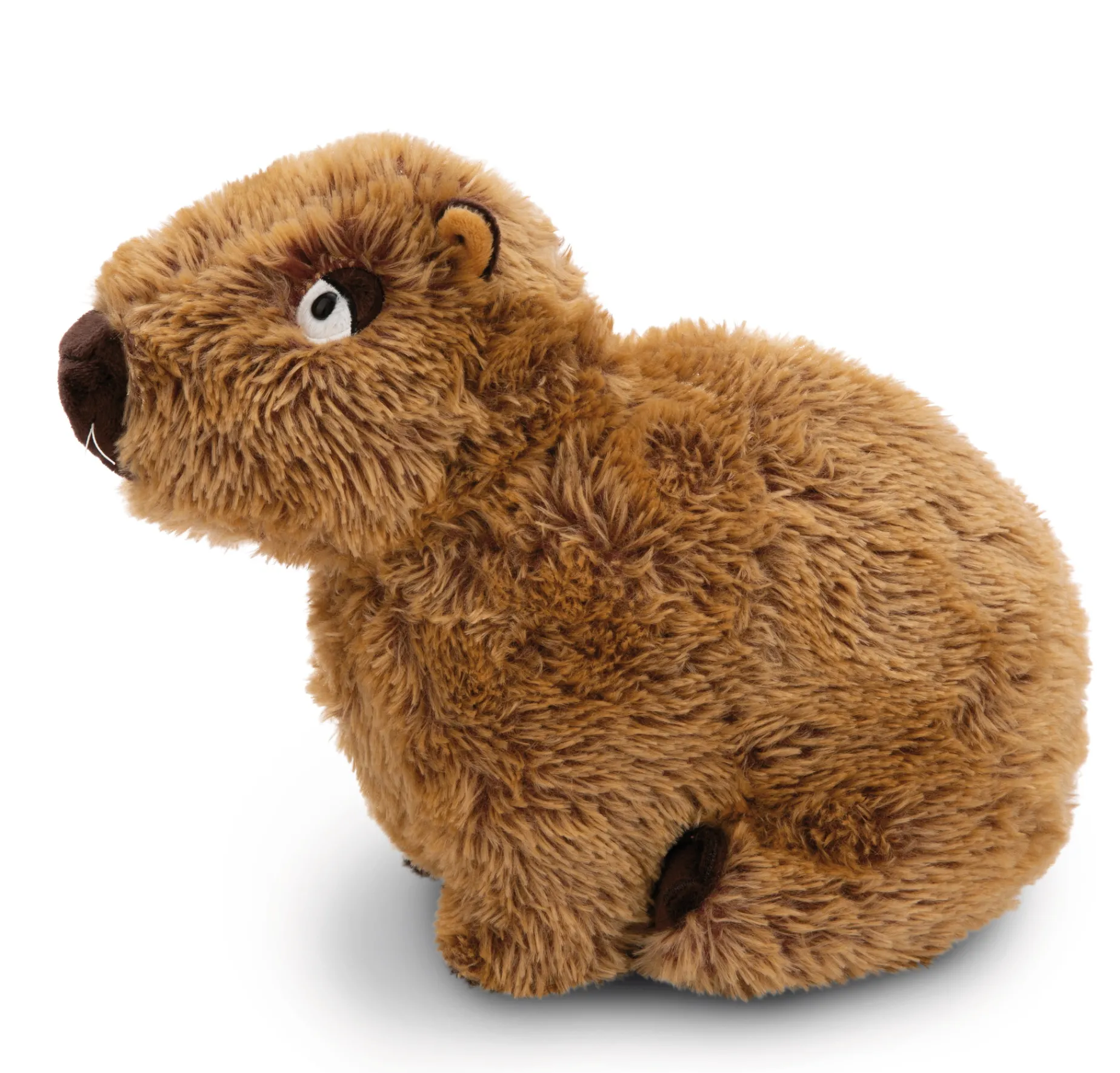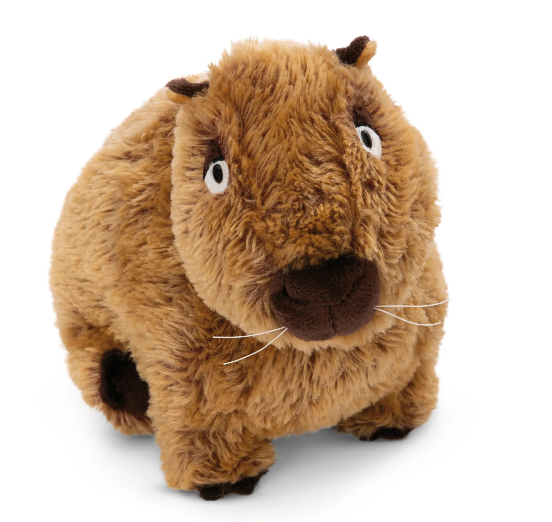 A capybara is indigenious in South America and the largest rodent on earth. At first glance, the capybara looks like an oversized guinea pig that is not only cuddly, but also friendly, deeply relaxed and happy. The trendsetter animal, known from social media, fascinates young and grown-up fans alike as the soft and fluffy Capy-Barbara cuddly toy. The thick, brown plush fur, the cute short legs, the large, round head with the adorable little eyes and ears make the sweet capybara a charming cuddly friend, funny playmate and loyal companion through thick and thin. A wonderful gift that will delight anytime and anywhere. The sitting Capy-Barbara is part of the NICI GREEN product world. For NICI GREEN products, we almost exclusively use plush and filling materials that are made from recycled materials. Primarily recycled PET bottles are processed into RPET for this purpose.