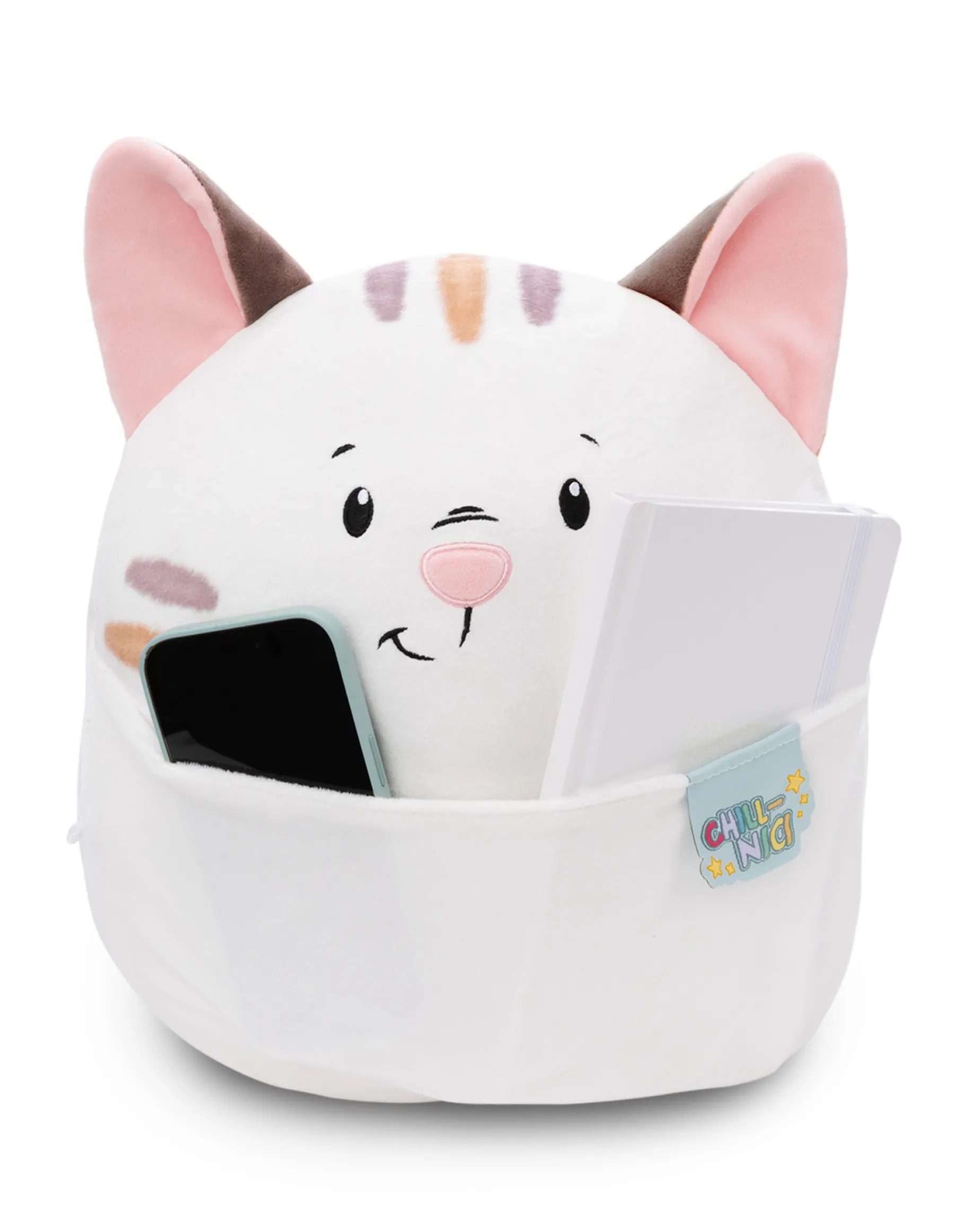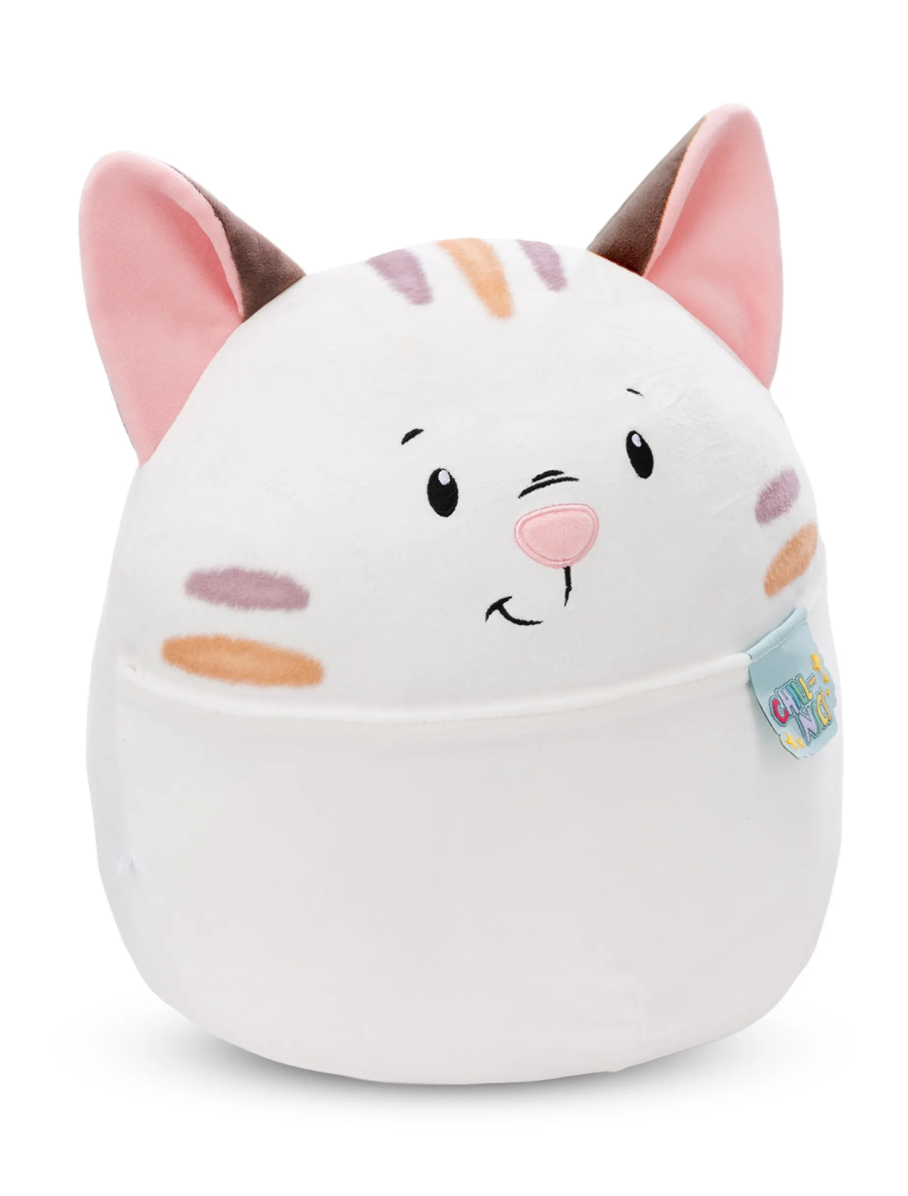 Soft, fluffy and squishy like a marshmallow – this could only be a super cuddly Chill-NICI soft toy! The friendly white NICI cat with gentle stripes and brown ears will fascinate with its fluffy, round body, a charming little face and a belly pocket that offers a hiding place for all your treasures. This cute cuddly kitten made of high-quality NICI stretchy plush material is a gorgeous cuddle friend, cushion, couch buddy, fun collectible or loyal travel companion and makes hearts melt. A perfect gift for any occasion and any age!