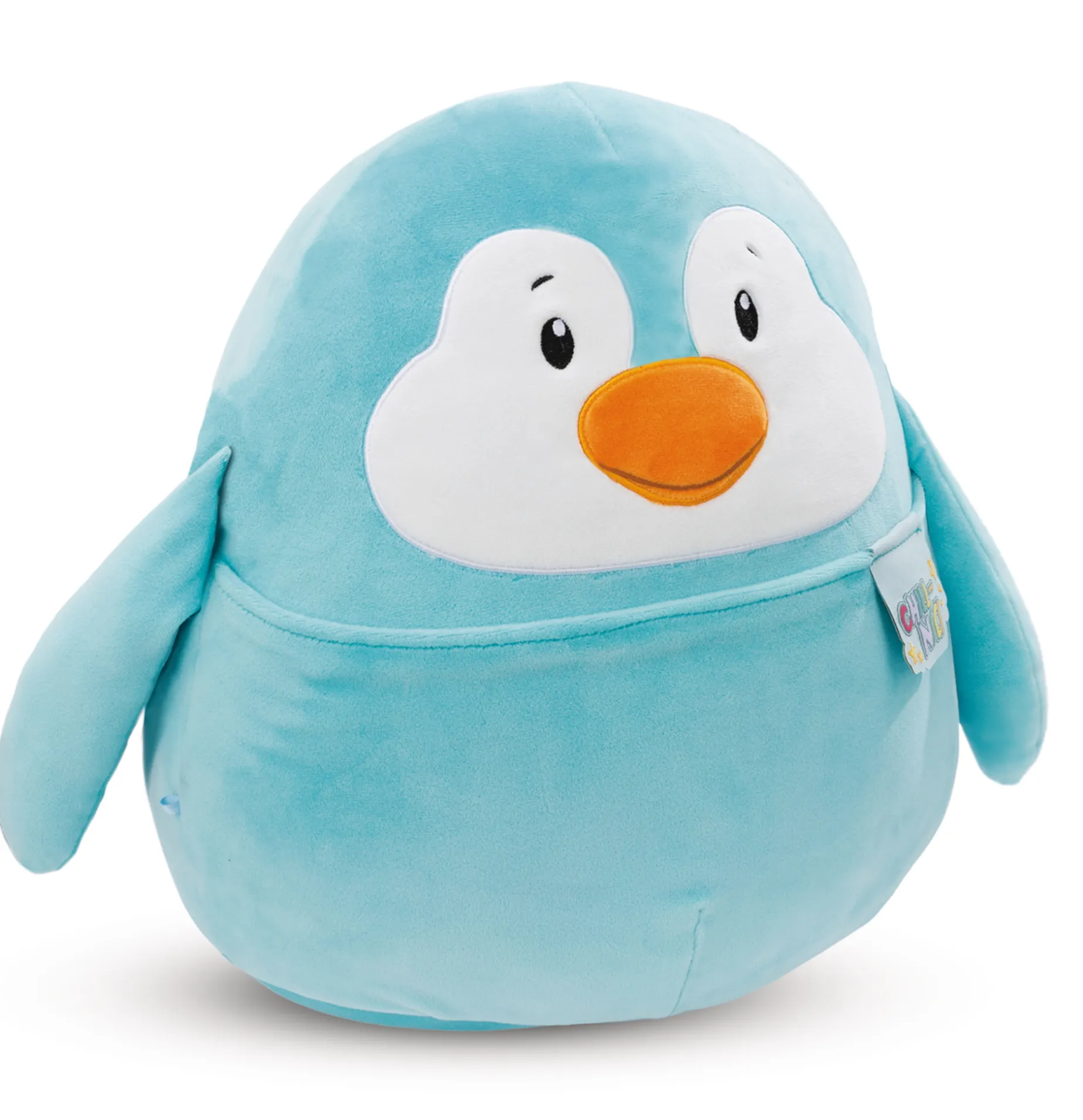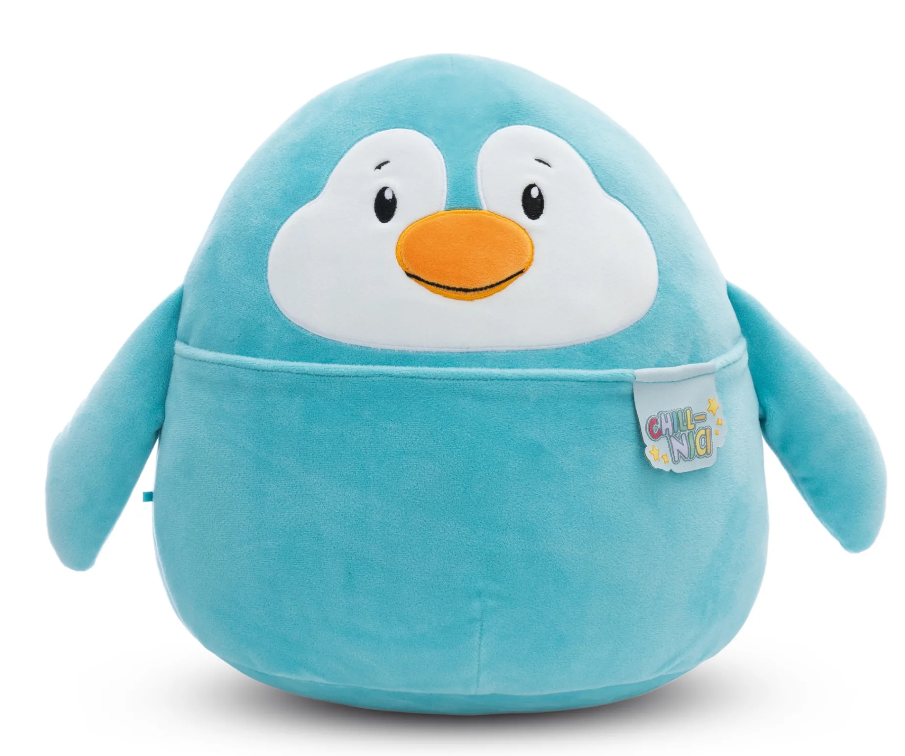 Soft, fluffy and squishy like a marshmallow – this could only be a super cuddly Chill-NICI soft toy! The adorable NICI penguin in ice blue with little wings will fascinate with its fluffy, round body, the yellow beak in the middle of its friendly little face and a belly pocket that offers a hiding place for all your treasures. This cute cuddly penguin made of high-quality NICI stretchy plush material is a gorgeous cuddle friend, cushion, couch buddy, fun collectible or loyal travel companion and makes hearts melt. A perfect gift for any occasion and any age!