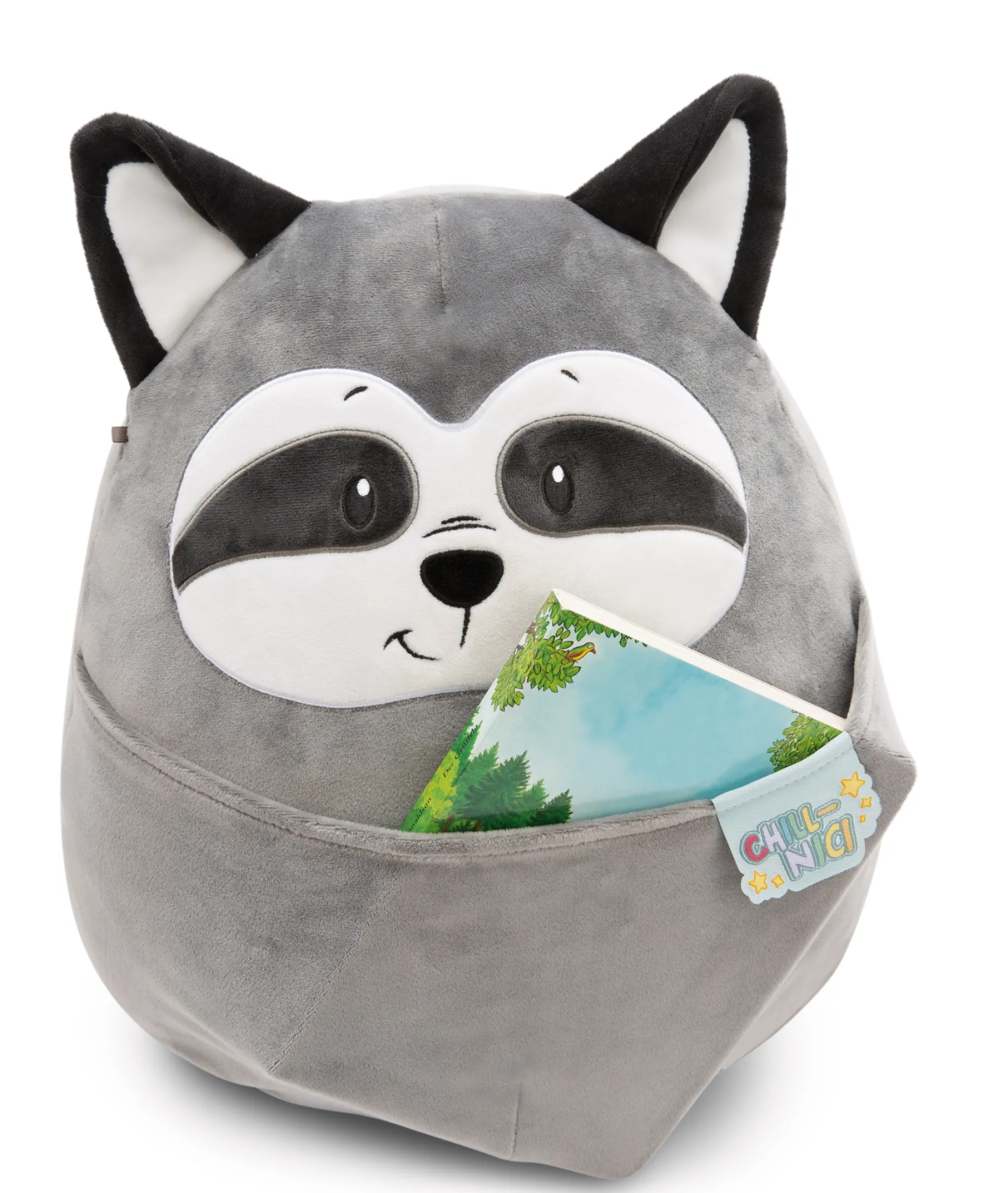 Soft, fluffy and squishy like a marshmallow – this could only be a super cuddly Chill-NICI soft toy! The smart NICI raccoon with his grey plush body will fascinate with his typical white raccoon face with black mask around the eyes, little black and white ears, his fluffy, round body and a belly pocket that offers a hiding place for all your treasures. This cute raccoon made of high-quality NICI stretchy plush material is a gorgeous cuddle friend, cushion, couch buddy, fun collectible or loyal travel companion and makes hearts melt. A perfect gift for any occasion and any age!
