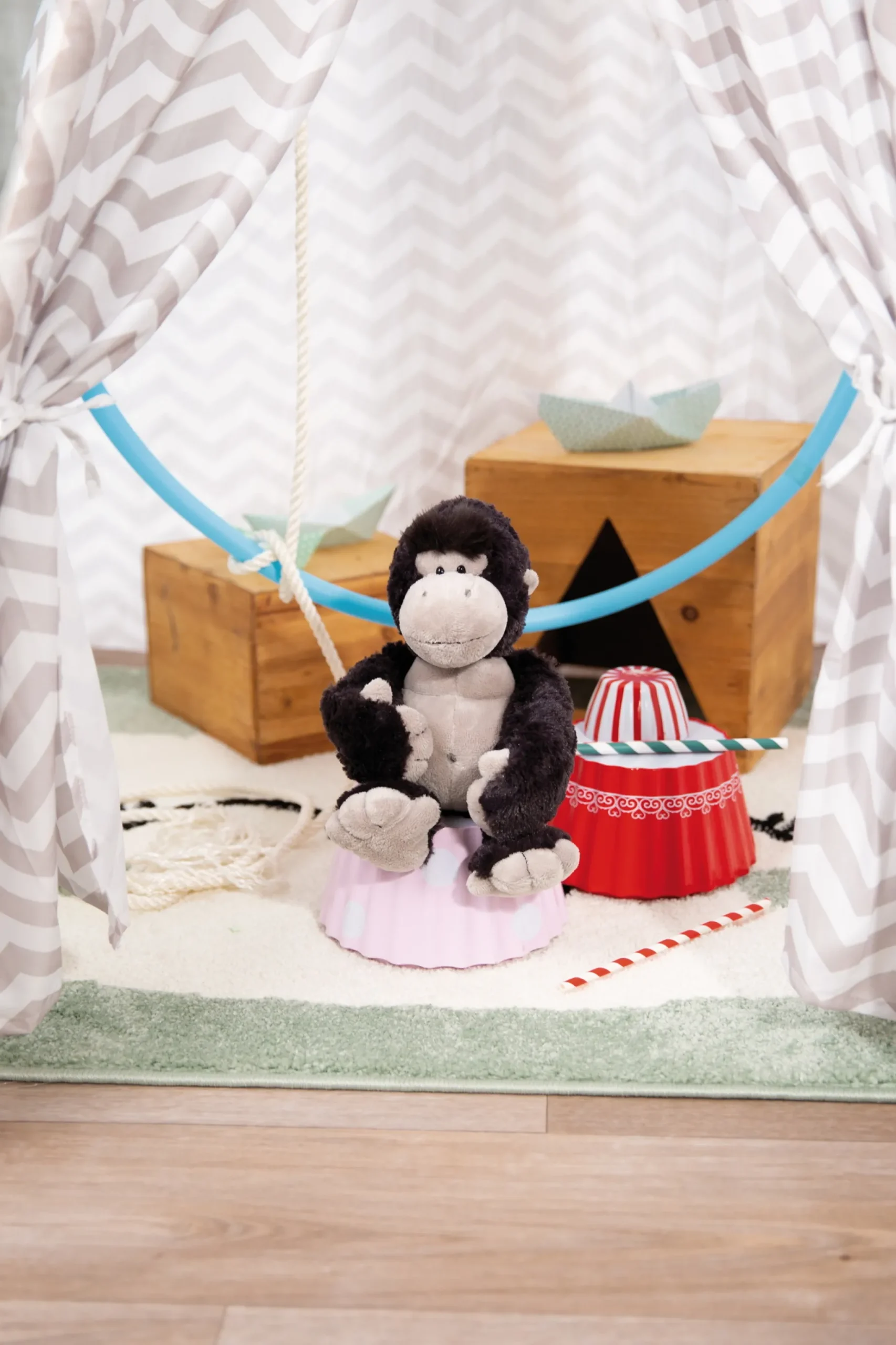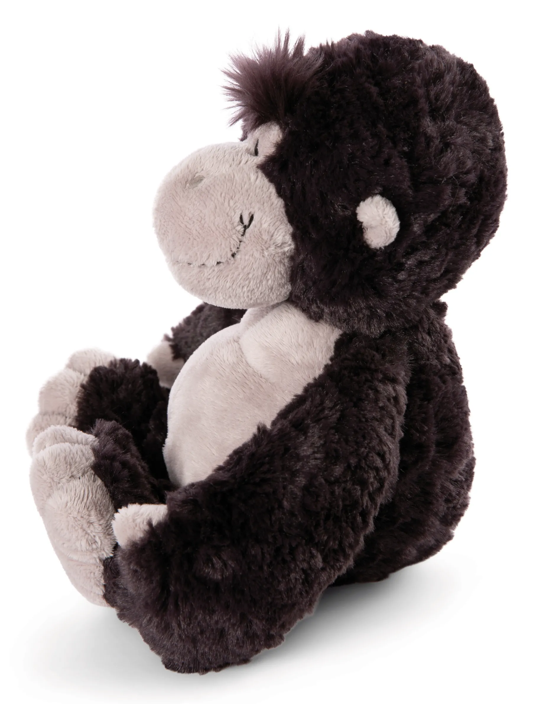 Discover the awesome NICI gorilla – a fluffy plush wonder in lifelike anthracite and grey! This impressive cuddly friend is as strong as a real gorilla. With his high-quality NICI plush, he not only invites to cuddle, but also offers the perfect strong shoulder to lean on. His irresistible look with the typical NICI eyes takes hearts by storm. His strong arms are perfect for a warm hug. Whether playing, cuddling or simply as a stylish decorative soft toy – the NICI gorilla always cuts a fine figure and brings joy into every home.