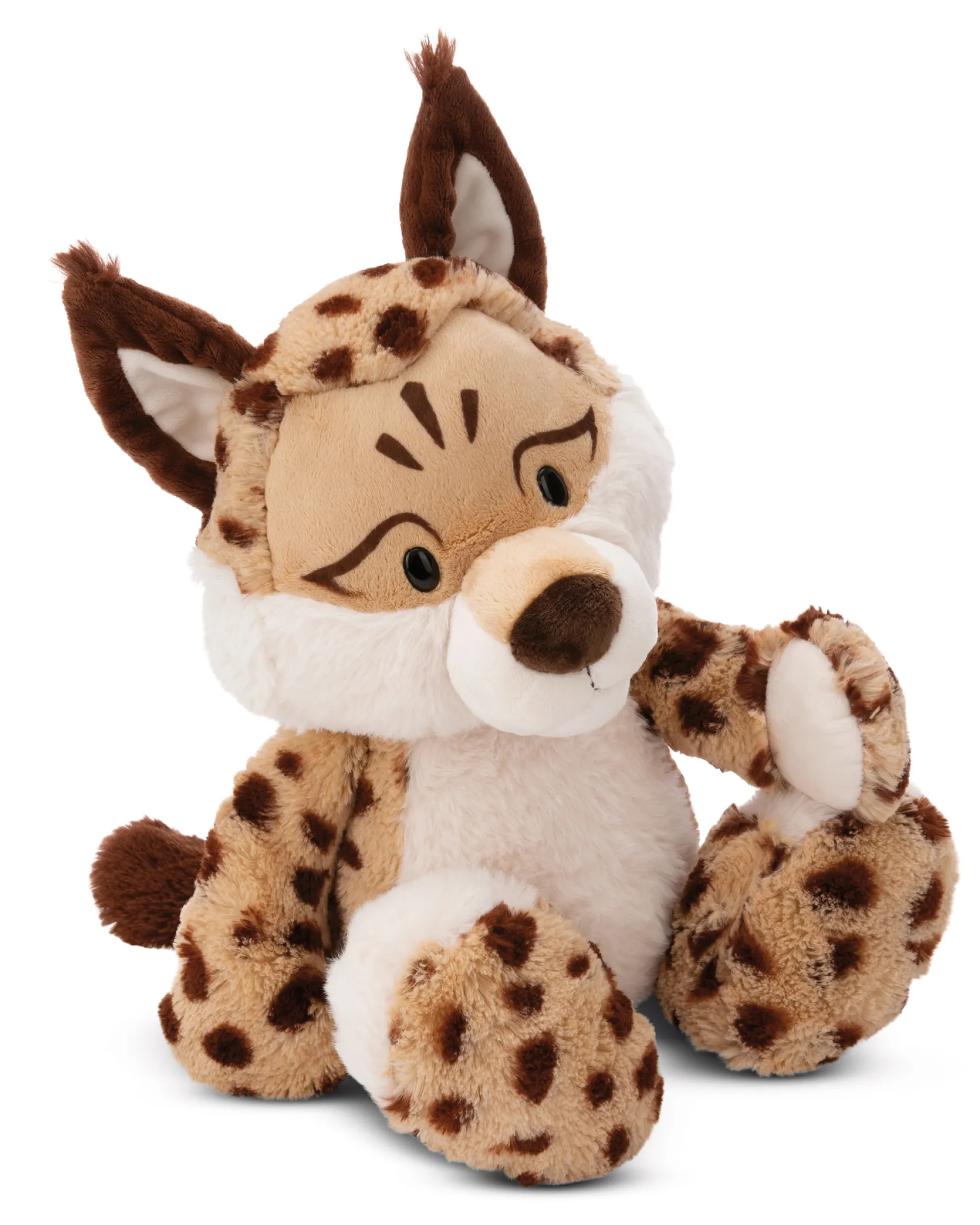 Lynx Lyka from the Wild Friends collection by NICI is quickly becoming an indispensable play and cuddle friend with her high-quality, beautifully spotted plush fur and fluffy soft filling. You just have to fall in love with her charming little face and the funny brush ears. Lyka can’t wait to experience lots of exciting adventures with her new owner and then fall asleep tiredly side by side in the evening. The lynx soft toy is part of the NICI GREEN product world. For NICI GREEN products, we almost exclusively use plush and filling material made from recycled materials. Primarily recycled PET bottles are processed into RPET for this purpose.