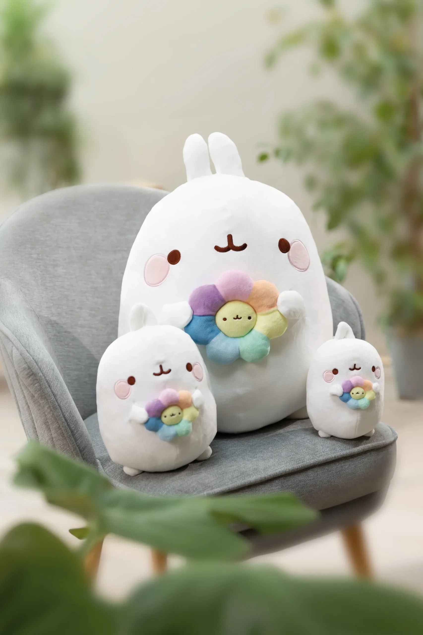 Molang, the lovable character from the same-titled TV series and well-known from social media, is an enchanting plush friend made of super cuddly white soft plush. With a pastel-coloured rainbow flower in his hands, his extremely cute little face and the particularly cuddly filling, Molang will snuggle into every child’s heart. But even adult Molang fans have succumbed to the irresistible charm of Molang. Whether at home or on the go, Molang is always a loyal companion and brings joy, fluffiness, cuddliness, creativity, confidence and humour into the lives of his fans.