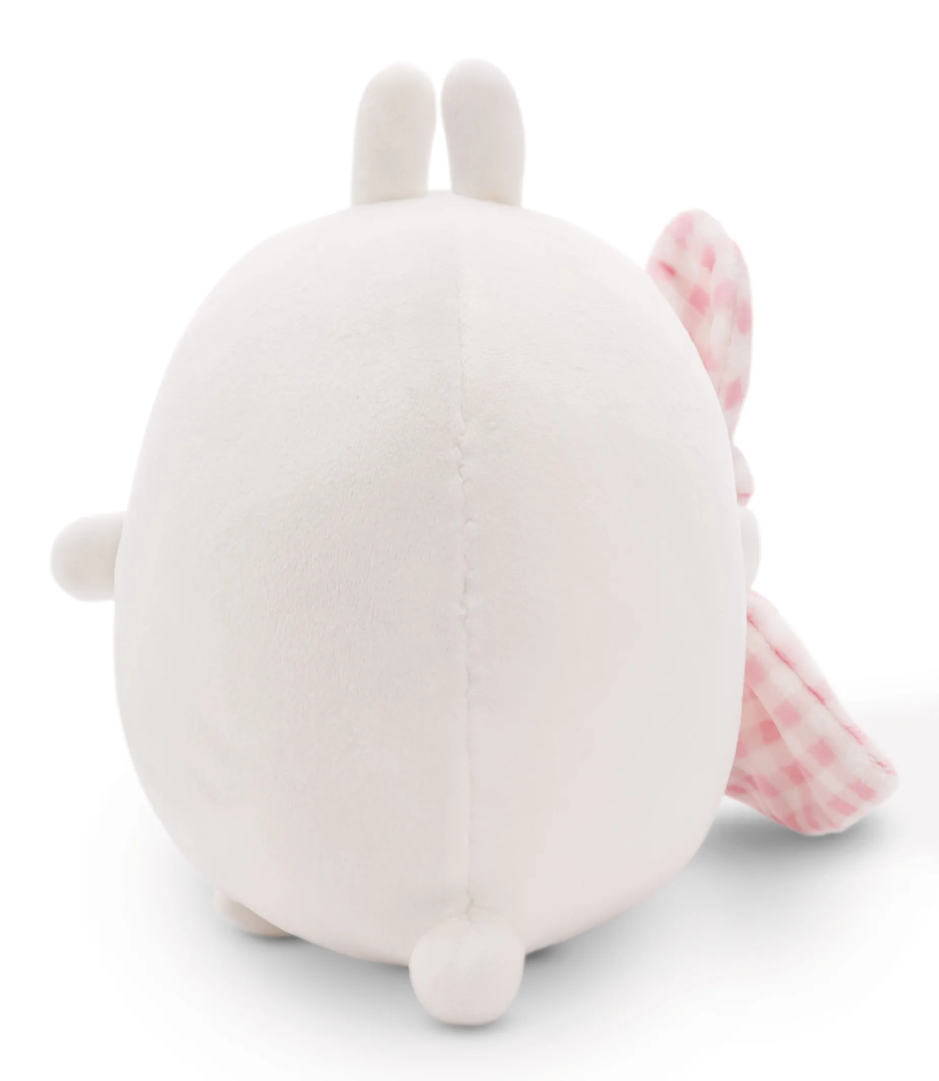 Welcome baby! Here comes Molang, the lovable character from the same-titled TV series and well-known from social media, as a supersoft and cuddly baby plush toy. His extra soft and stretchy, high-quality material with fluffy, fleecy filling is gentle to tender baby skin, guaranteed safe and has the perfect size of 20cm for cuddling and playing with the littlest ones. Molang enchants with its charming little face that radiates lots of love, his mini comforter that invites babies to hold and feel it, a little strawberry as a super cute design element and the cosy, white stretch plush that ensures a sense of well-being.