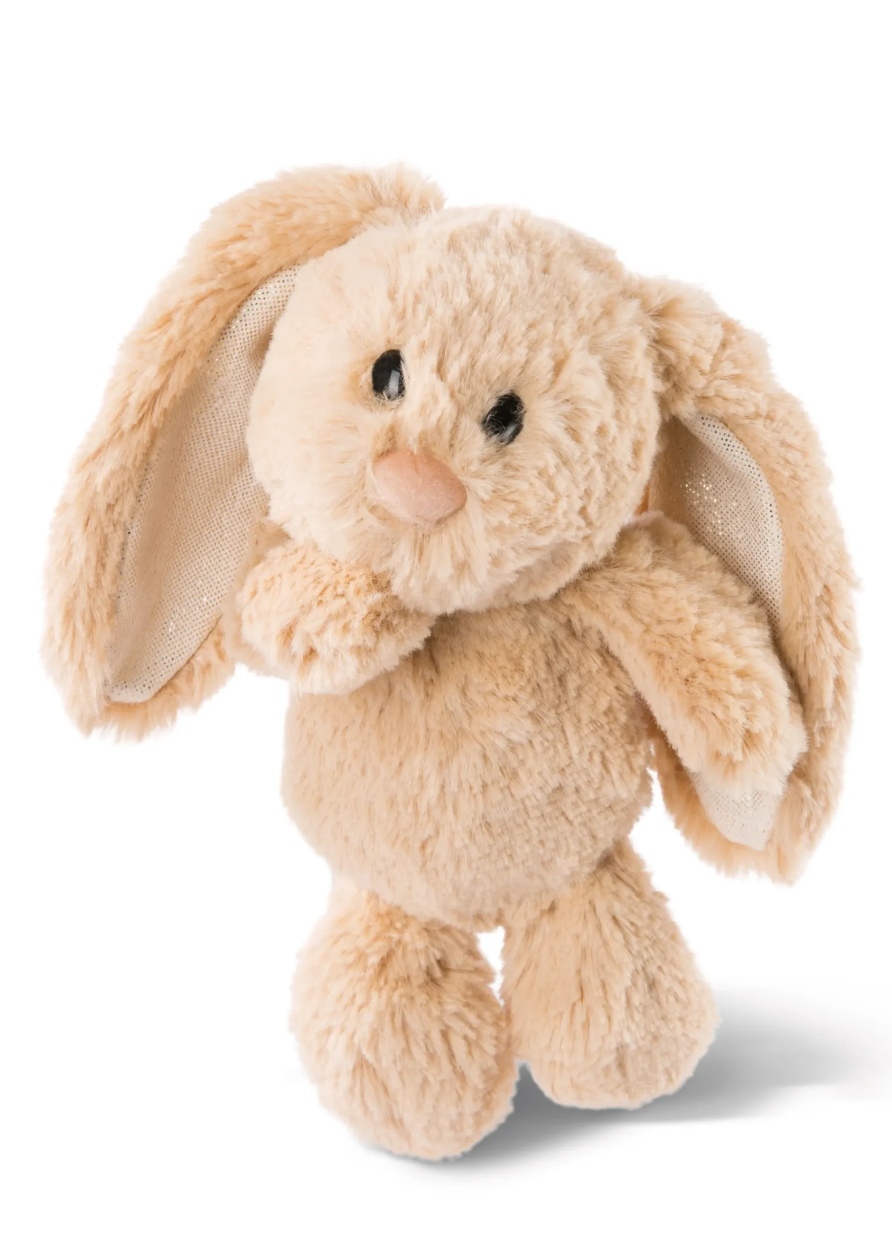 Who’s that hopping his way into your heart? No one can resist this light brown cuddly rabbit with its big fluffy ears lined with shiny gold fabric. The bunny is simply adorable! The charming plush friend is the perfect Easter gift for young and old.