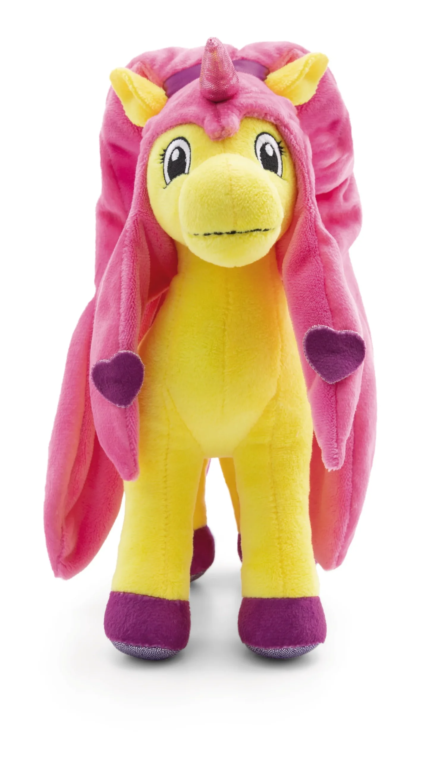 Lissy PONY Unicorn Dilara, the heart unicorn from the magical world of Lissy PONY Unicorns, will delight girls with her eye-catching yellow standing plush body, glitter accents on her forehead horn and hooves as well as her opulent tail and mane, which are appliquéd with hearts, both in a bright pink colour. Her cute facial expression paired with the fluffy soft NICI plush material will make girls’ hearts melt. The magically beautiful Lissy PONY unicorn Dilara invites girls to cuddle, play, dream and collect. Dilara can also be used to re-enact the exciting adventures of the Lissy PONYs and the imagination of little Lissy PONY fans can go on a journey.