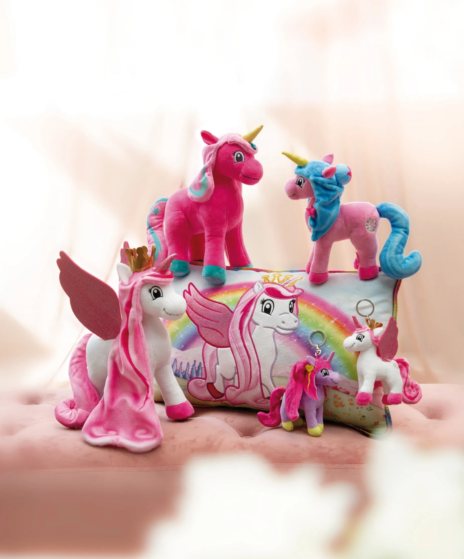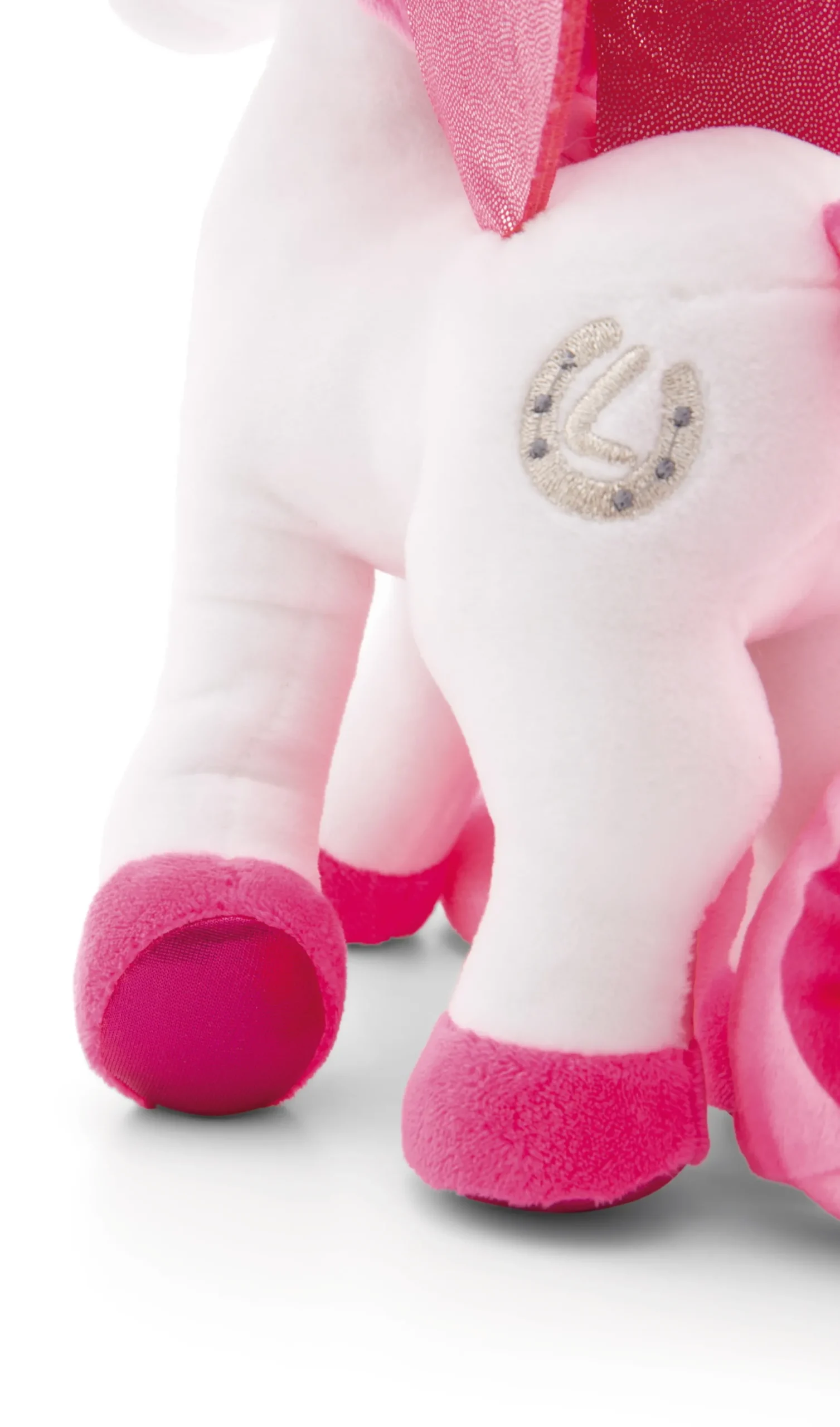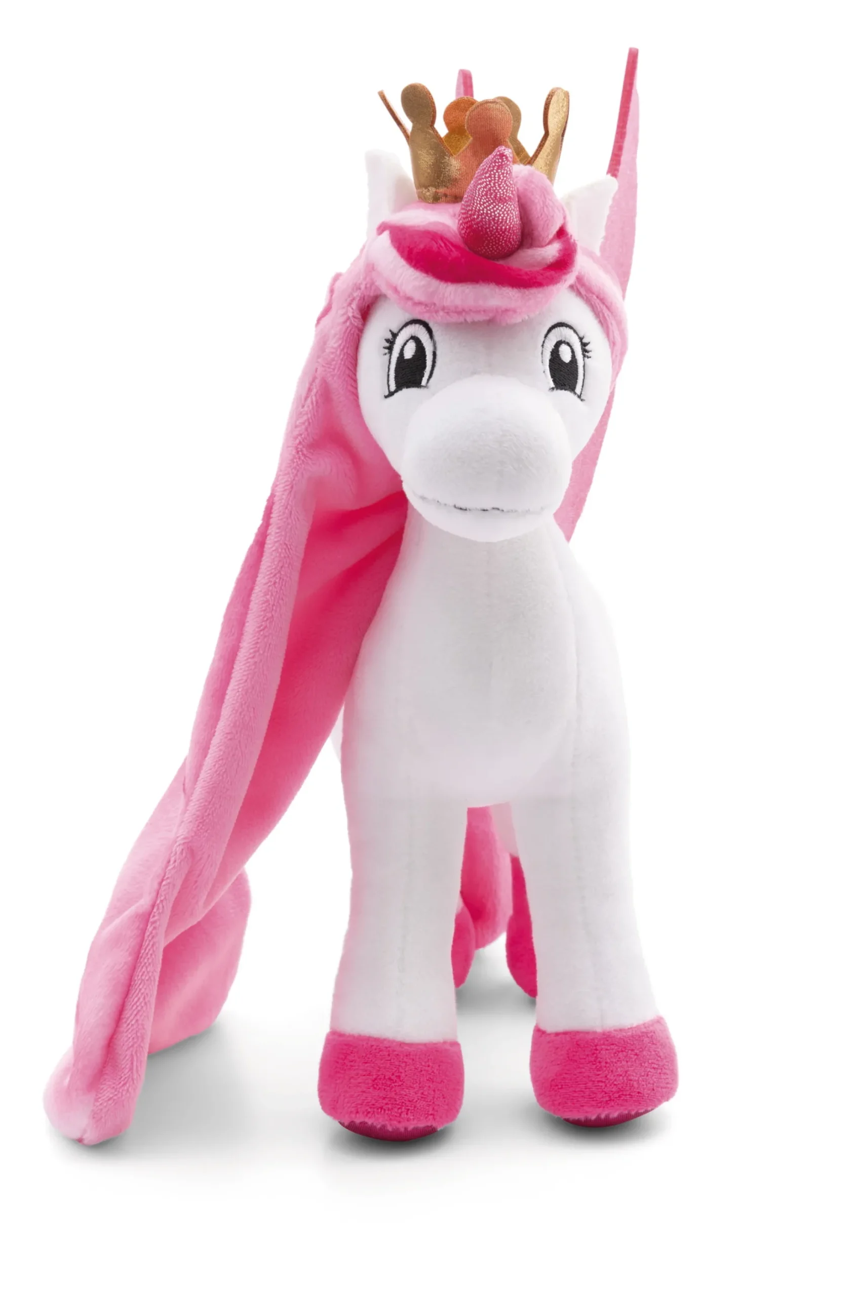 Lissy PONY Unicorn Tamani is a cute unicorn princess with a golden crown and magical glitter wings. Standing soft toy Tamani is made of cuddly smooth NICI plush and makes girls’ hearts beat faster with her enchanting look in white and pink. Her extravagant mane design in different shades of pink, the XXL unicorn wings and the pink glitter horn paired with the extremely charming facial expression will delight young unicorn and Lissy PONY fans. An exceptionally beautiful soft toy to love and collect, which also stimulates the imagination and allows to re-enact the exciting adventures of the Lissy PONYs.