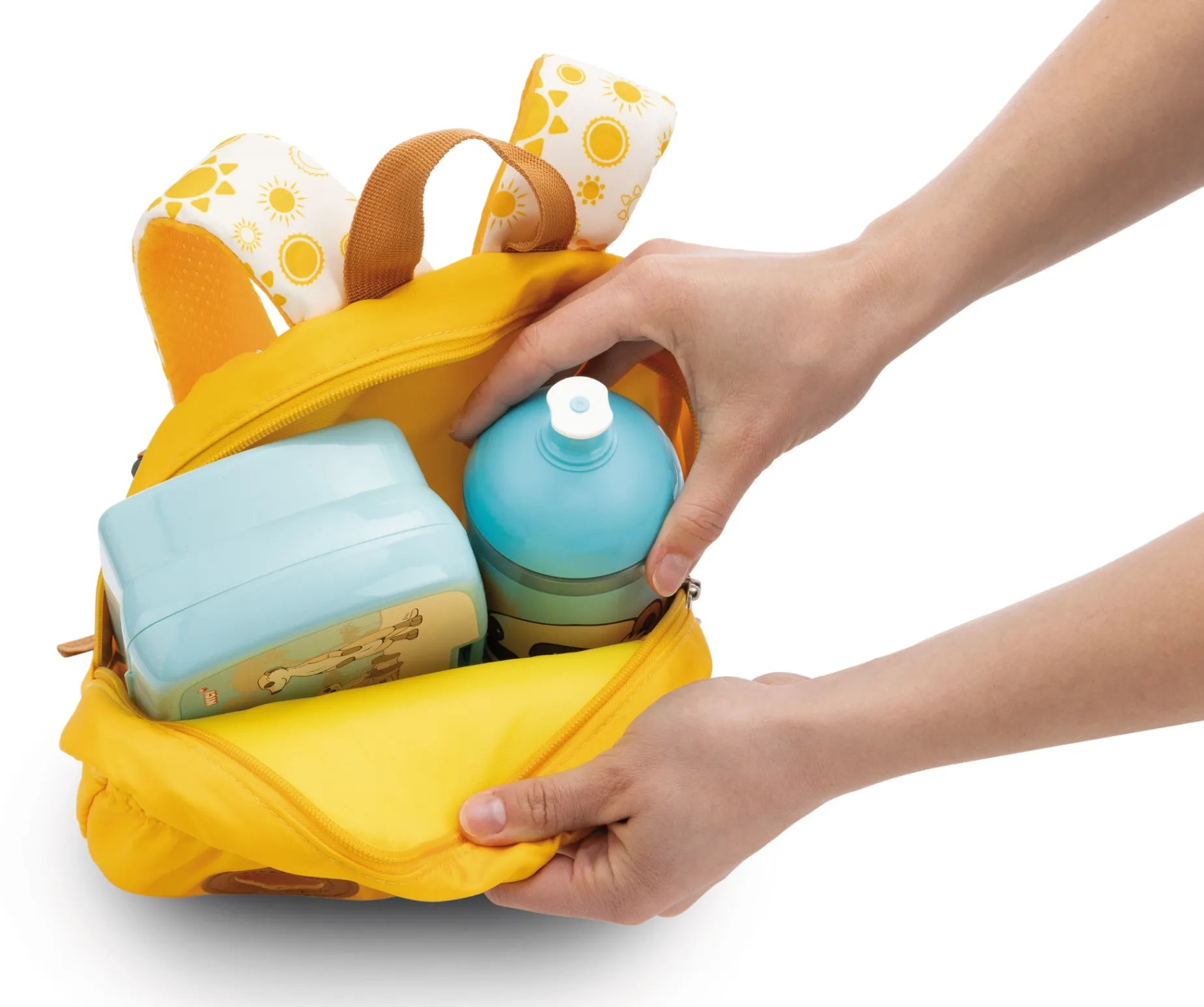 Who likes to leave the house without his or her favourite soft toy? The NICI backpack in a yellow sun design combines magical cuddly fun with the functionality of a spacious children’s backpack. From now on, a cute, light brown rabbit made of fluffy, soft NICI plush with long floppy ears and adorable button eyes can be taken along on every trip without taking up space for a drinking bottle and lunch box. A specially attached seat pocket with an elasticated band provides a secure hold and allows the bunny to see the world from the child’s back. The 25cm soft toy can easily be removed for cuddling, playing and loving. Padded and adjustable shoulder straps and a pleasantly soft back section in proven NICI quality ensure good carrying comfort. The backpack, with integrated name tag, is a great gift and the ideal companion for all little adventurers, world explorers and backpackers.